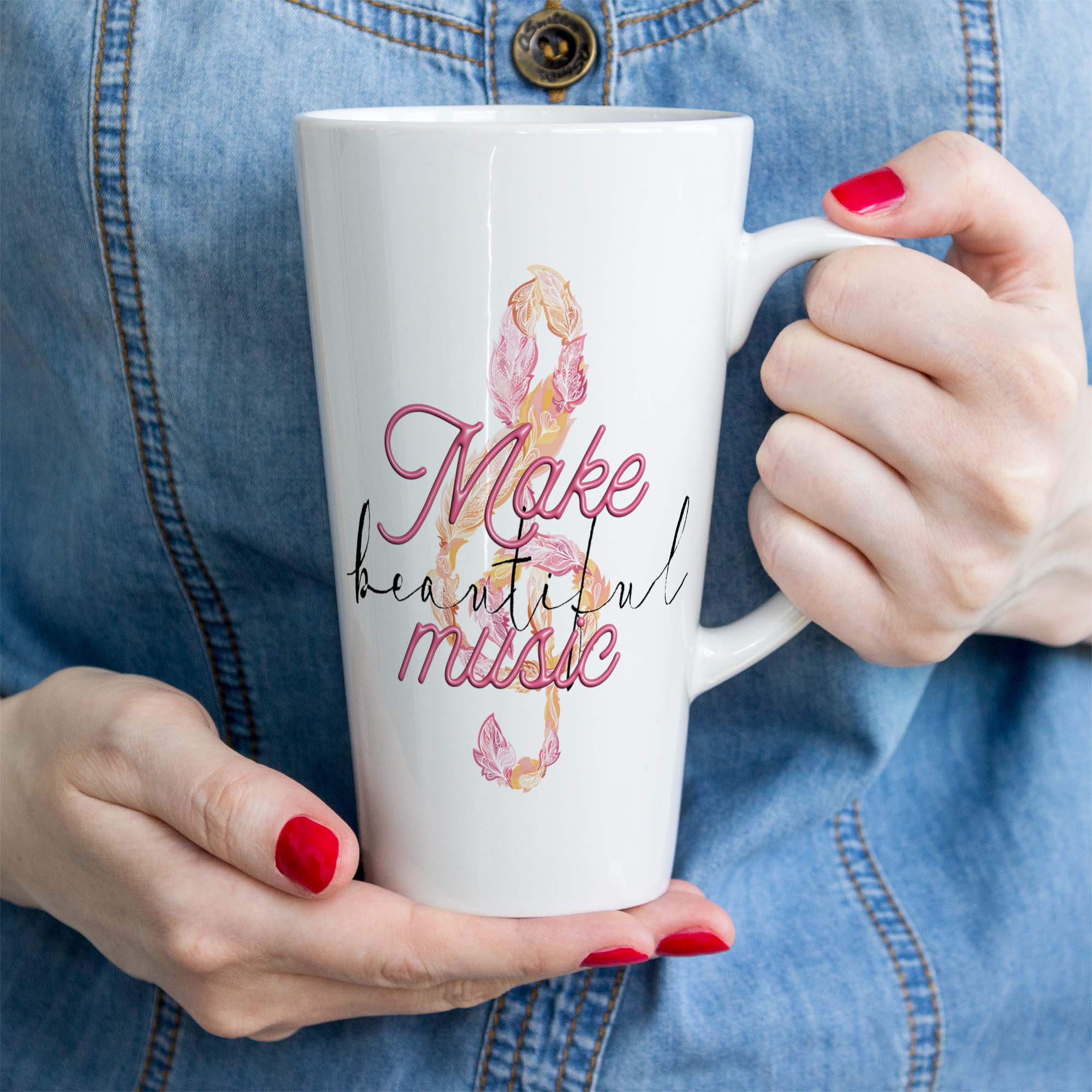Klucz wiolinowy - Make beautiful music - Upominek dla muzyka - Kubek dla muzyka - Kubek latte