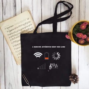 Torba na nuty inne muzyczne szpargały. Może się przydać również na zakupy czy też ciężką teczkę z racji na mocny materiał (to znacznie mocniejsza torba, niż zwykle są sprzedawane). 5 rzeczy, których nikt nie lubi