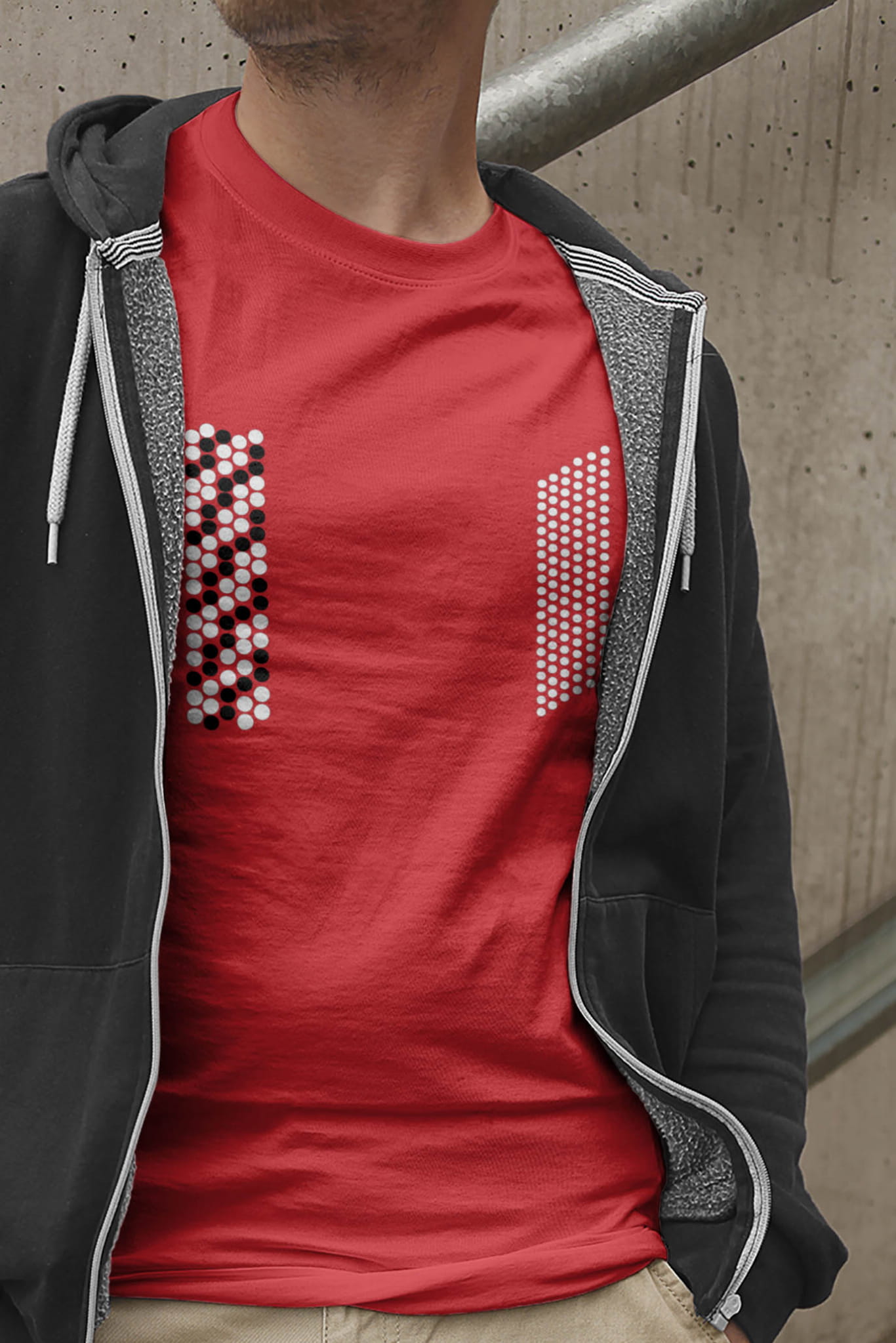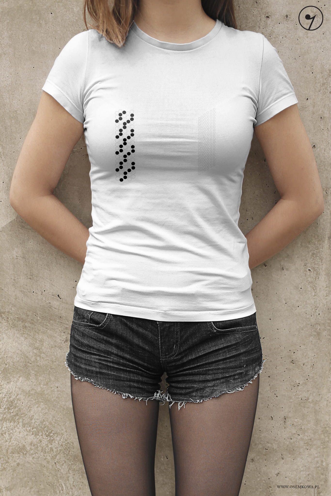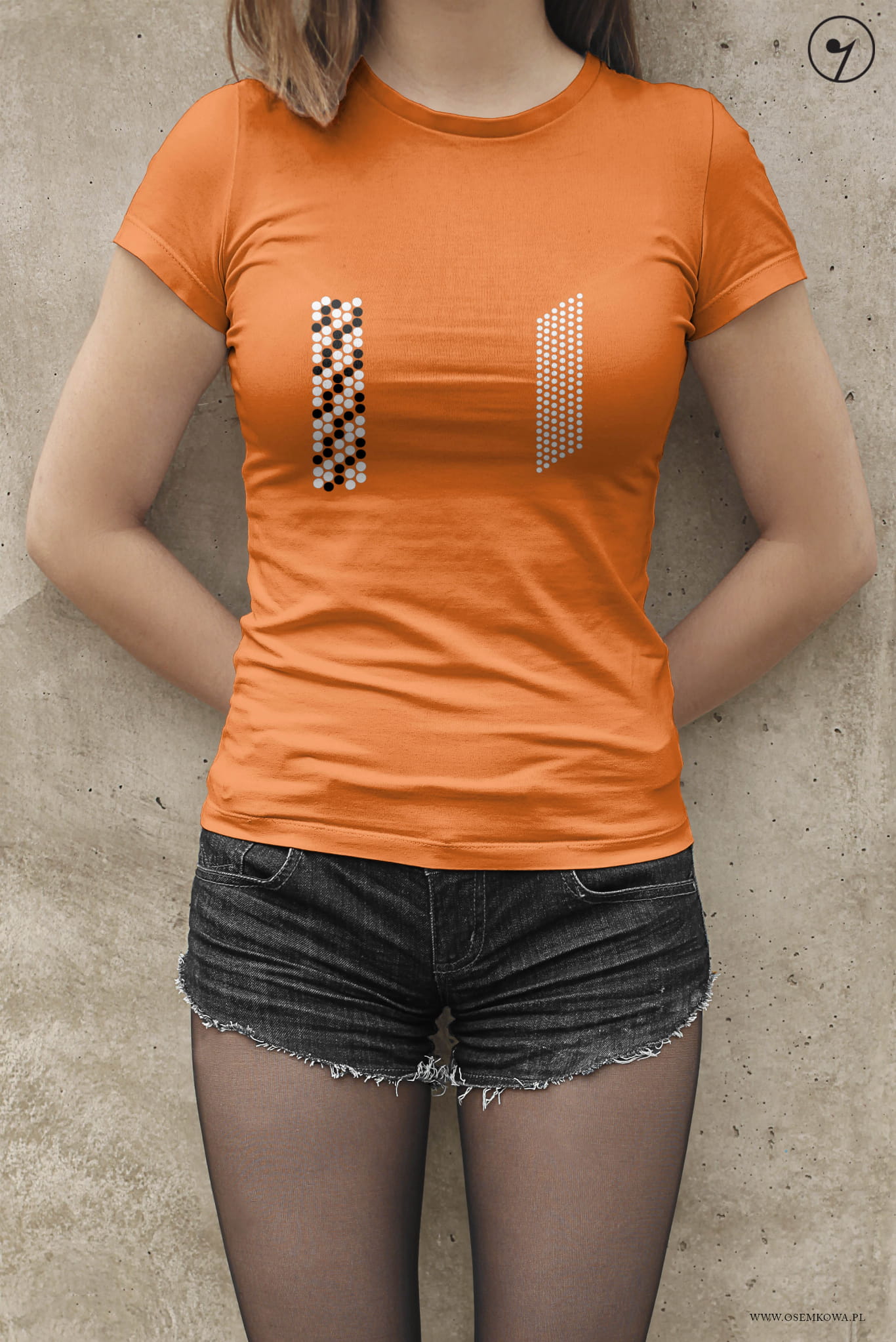 100% bawełna półczesana Ringspun. Wzmocnienie taśmą na szyi.