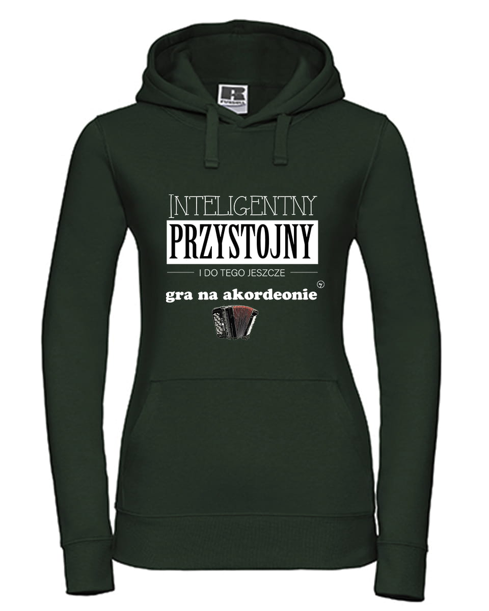 Ciepła bluza, rozmiar uniwersalny lub damski, ze wzorem - "Akordeon - Inteligentny przystojny i do tego jeszcze gra na akordeonie".