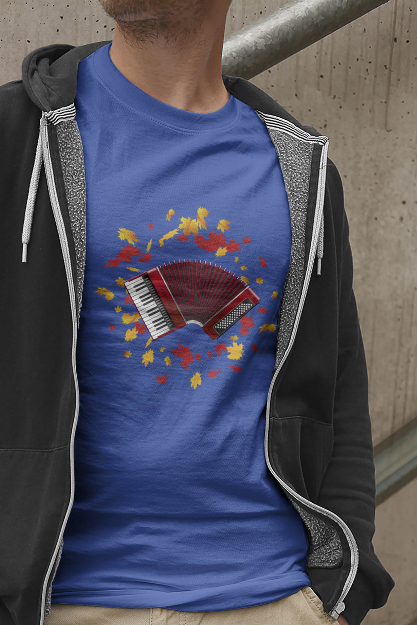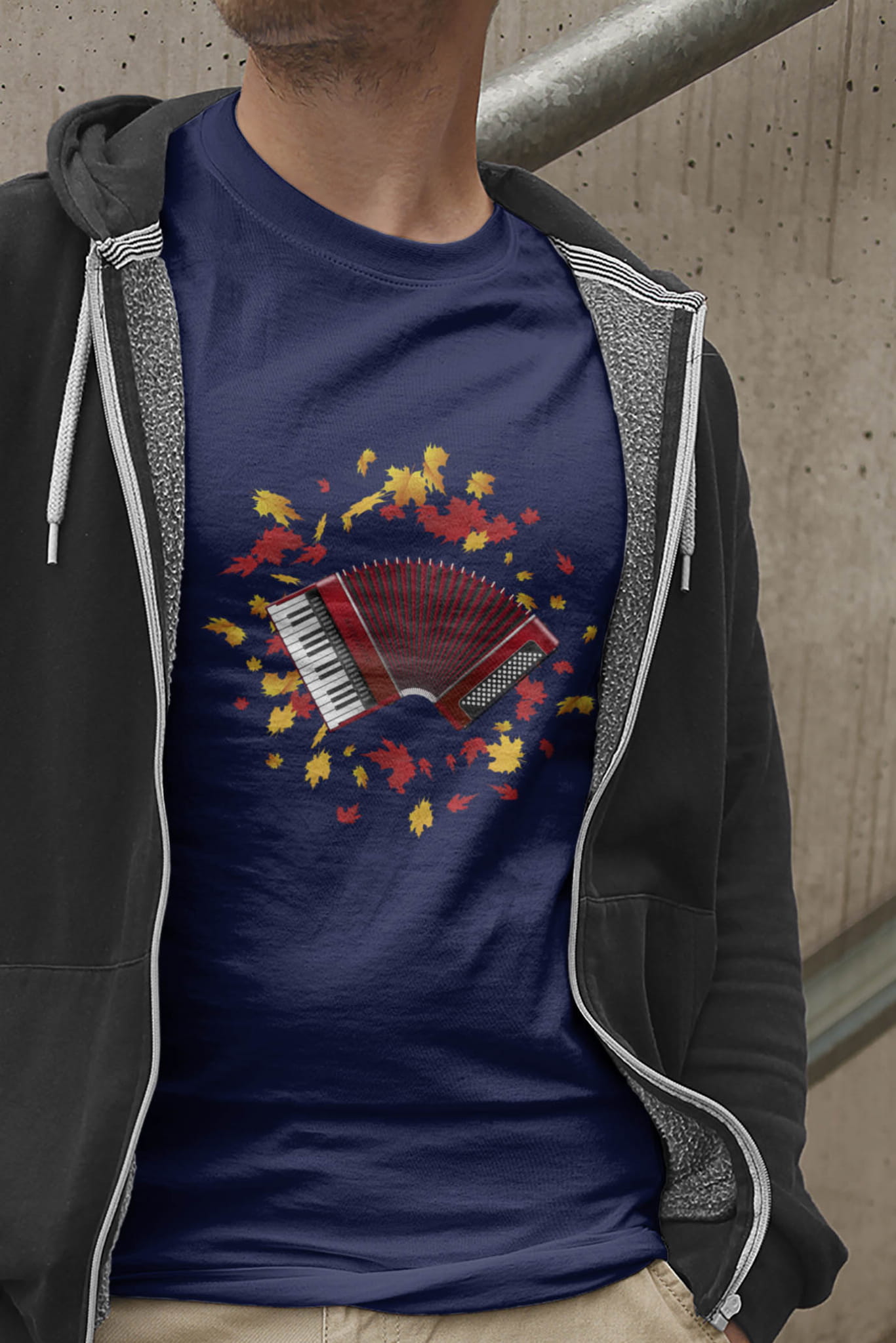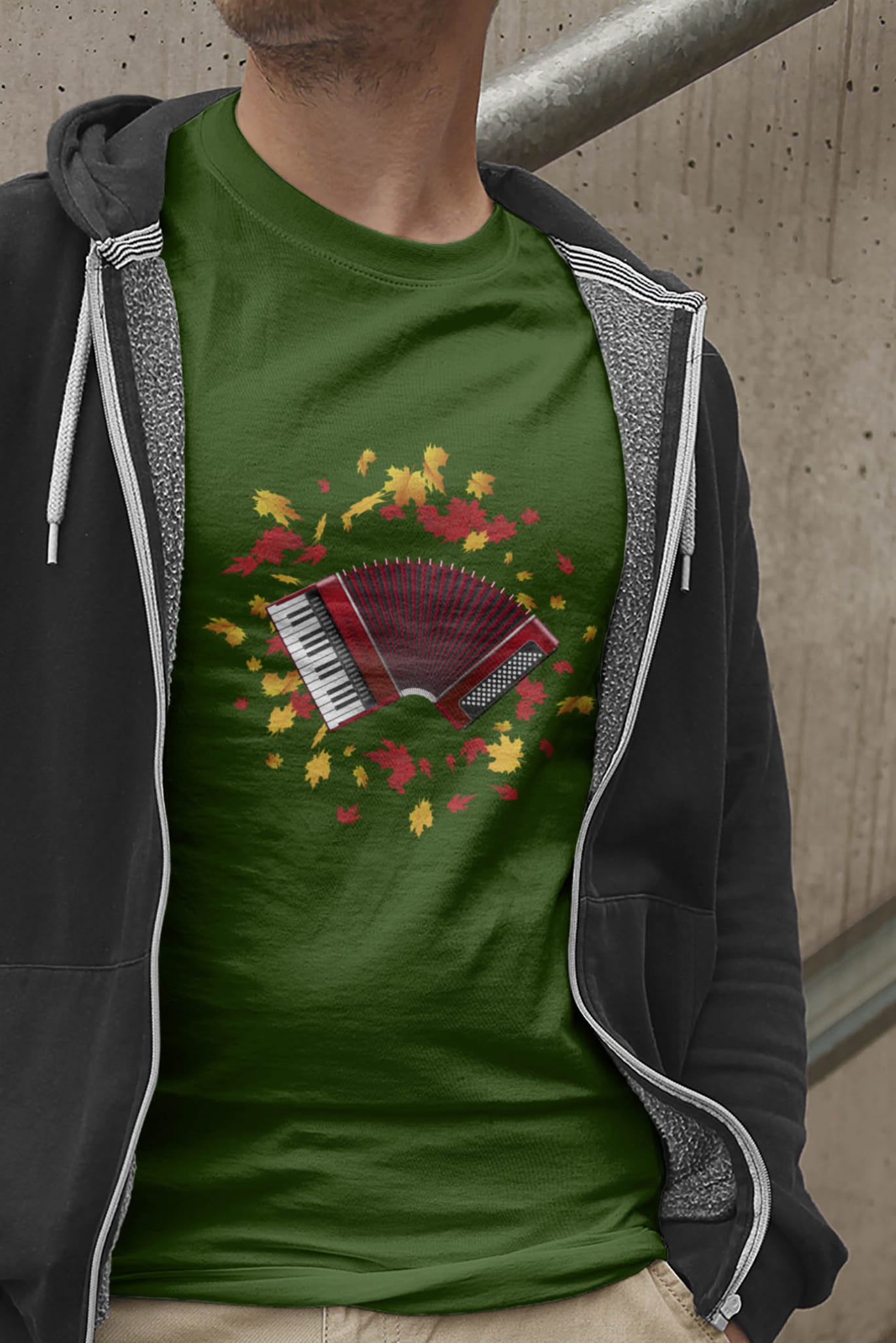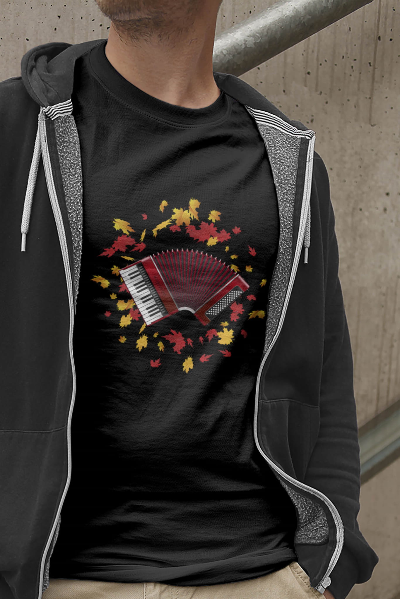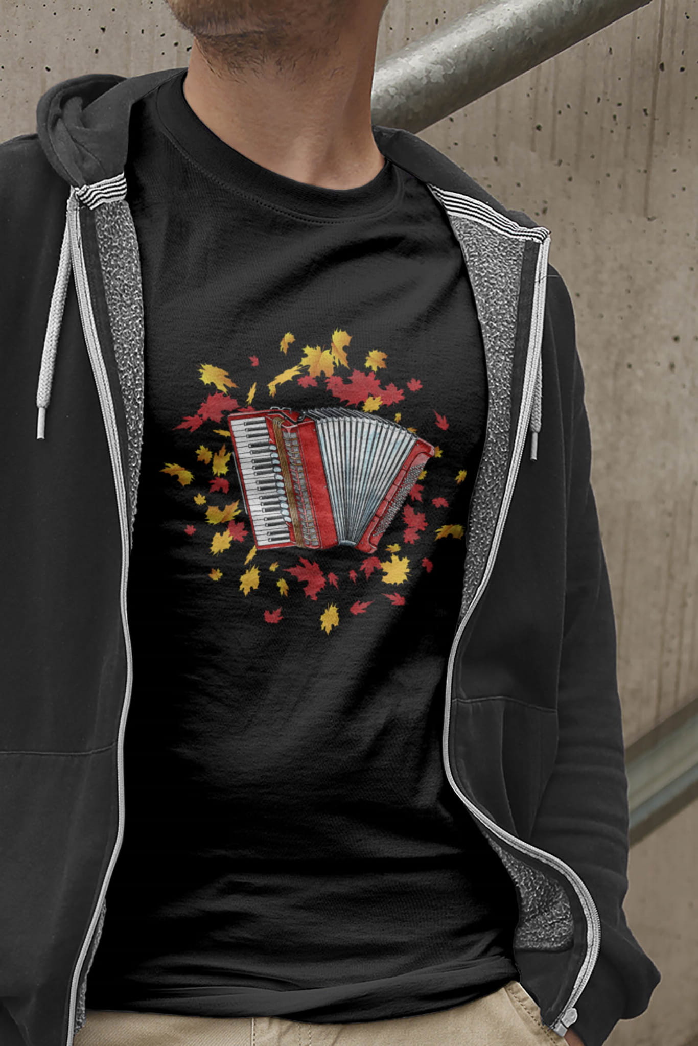 Koszulka z akordeonem. Akordeon - Liście