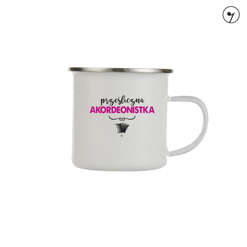 Kubek metalowy, emaliowany z uszkiem. Akordeon - Prześliczna akordeonistka - Kubek emaliowany