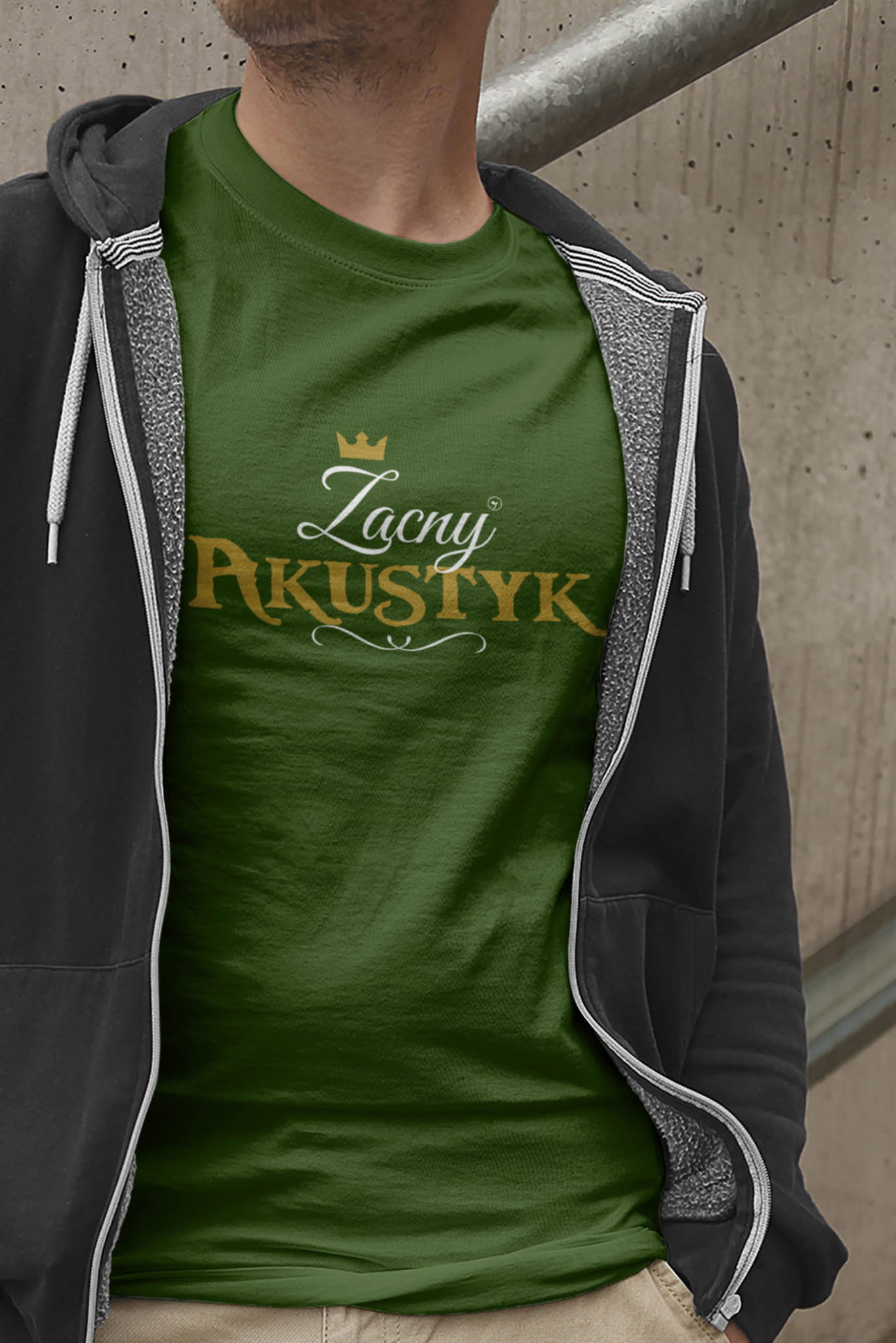 Koszulka „Zacny akustyk / Zacna akustyczka” ma z przodu ozdobny napis ze złotą koroną i czarnym ornamentem. Wygląda elegancko, ma charakter i nie jest „śmieszna na siłę”. Wybierasz wersję napisu: „Zacny akustyk” lub „Zacna akustyczka” i masz gotowy upominek dla akustyka, który serio będzie noszony. Wzór jest autorstwa Pauliny Strejczek-Jaźwińskiej.