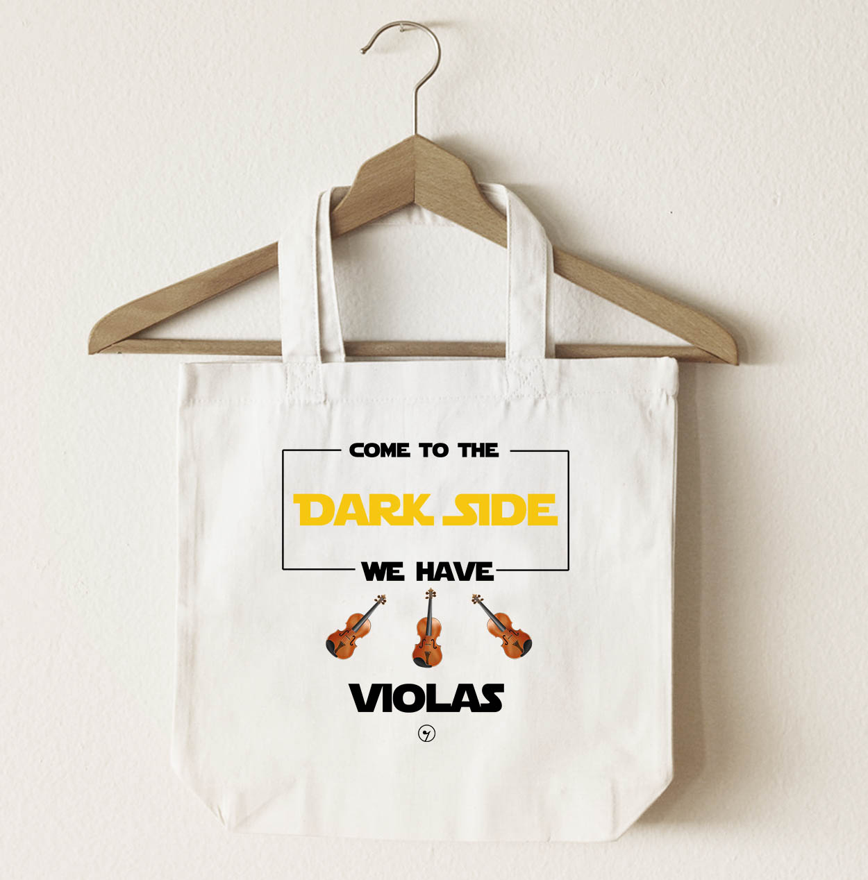 Torba na nuty i inne muzyczne szpargały. Może się przydać również na zakupy czy też ciężką teczkę z racji na mocny materiał (to znacznie mocniejsza torba, niż zwykle są sprzedawane). Z altówką.
