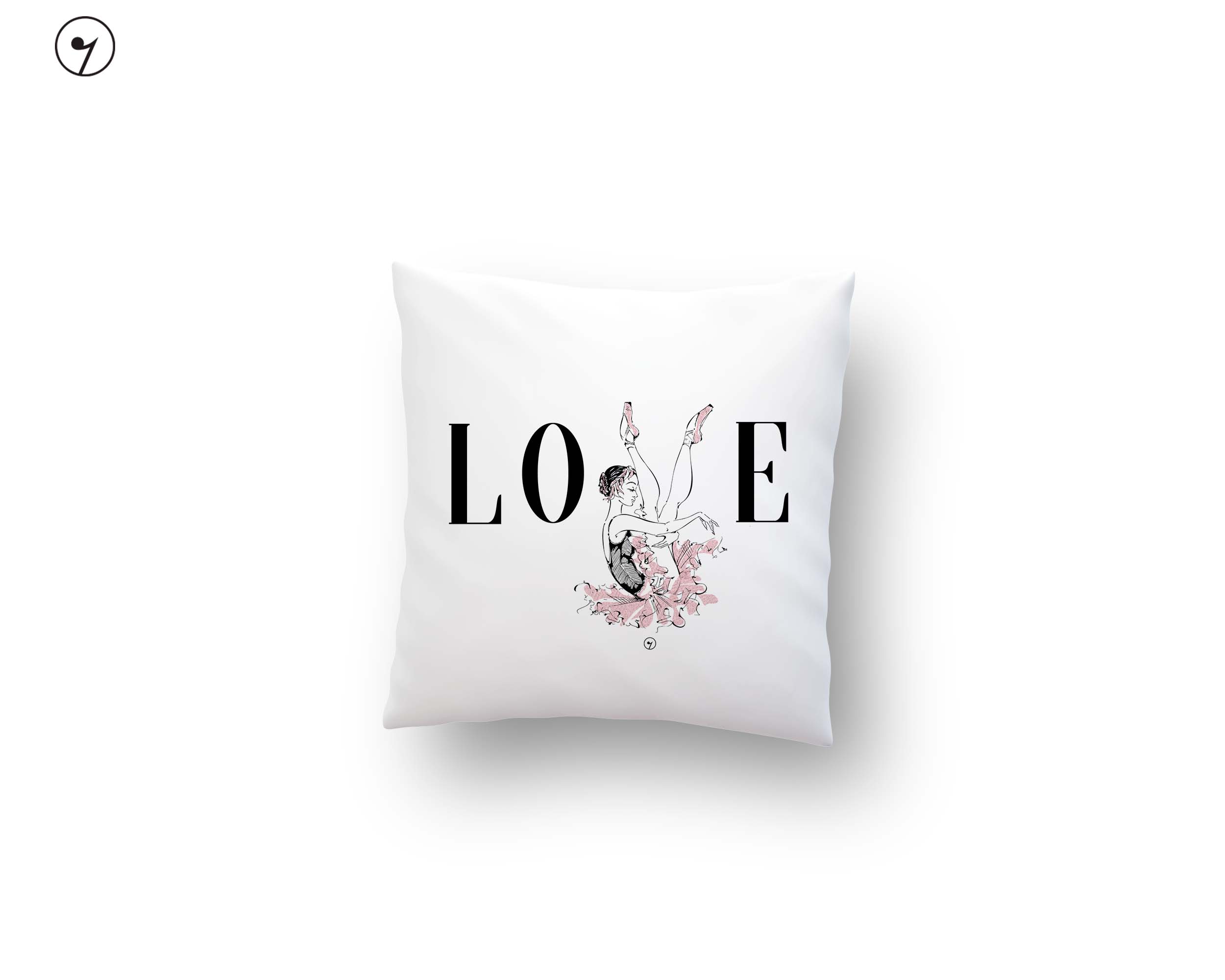 Biała, poliestrowa poduszka dekoracyjna. Love Balet.