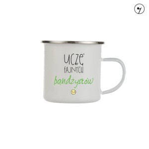 Kubek metalowy, emaliowany z uszkiem, Uczę fajnych bandżystów