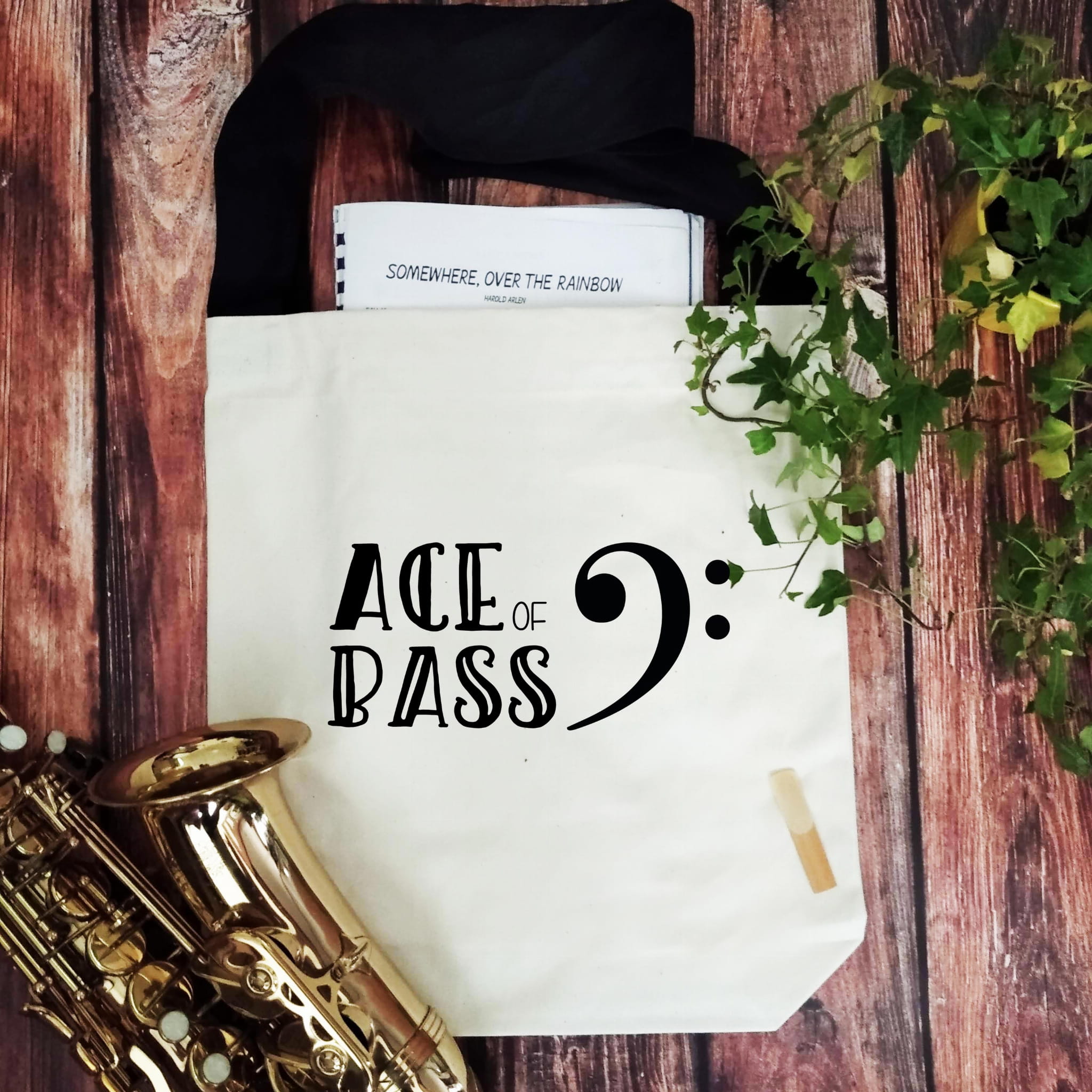 Torba na nuty i inne muzyczne szpargały. Może się przydać również na zakupy czy też ciężką teczkę z racji na mocny materiał (to znacznie mocniejsza torba, niż zwykle są sprzedawane) Dla prawdziwych basów i basistów - Bas - Ace of bass.