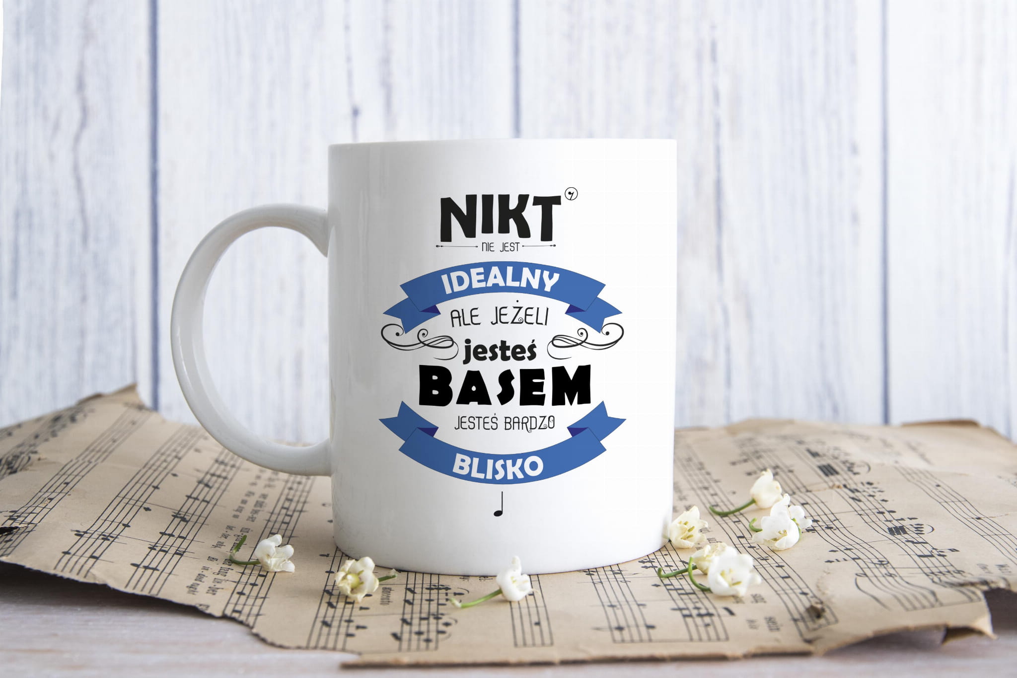 Kubek dla muzyka na kawę. Bas - Nikt nie jest idealny.