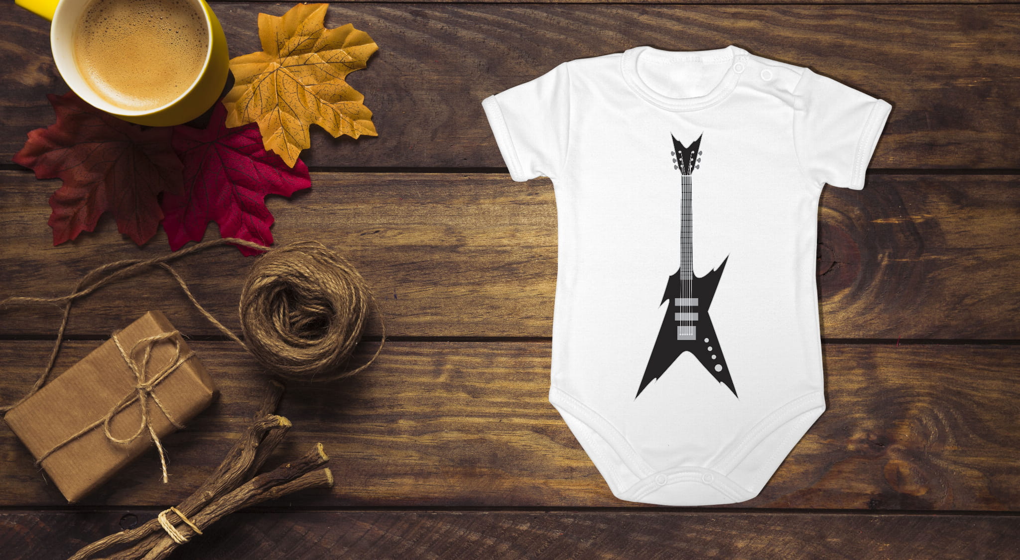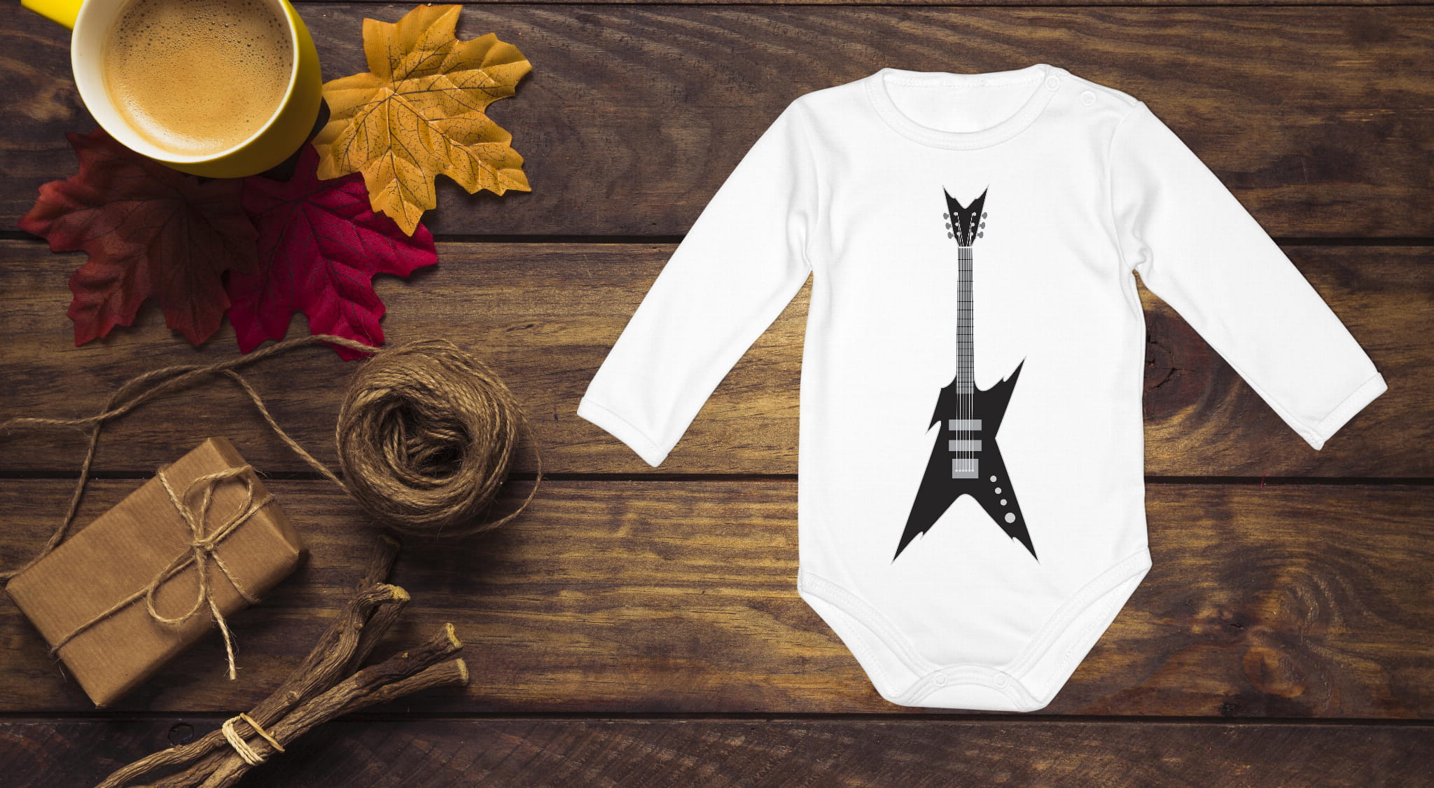 Body z krótkim i długim rękawem, wykonane z 100%- procentowej, miękkiej dzianiny bawełnianej. Gitara basowa.