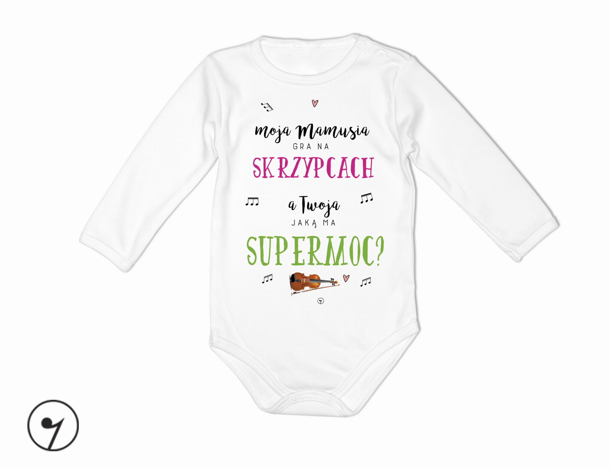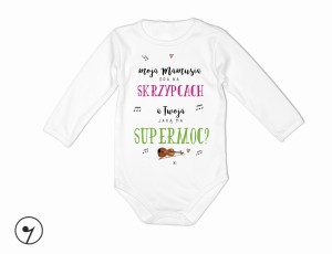 Body z krótkim i długim rękawem, wykonane z 100% - procentowej, miękkiej dzianiny bawełnianej w całości wykonane zostało w Polsce. Mamusia Skrzypce Supermoc