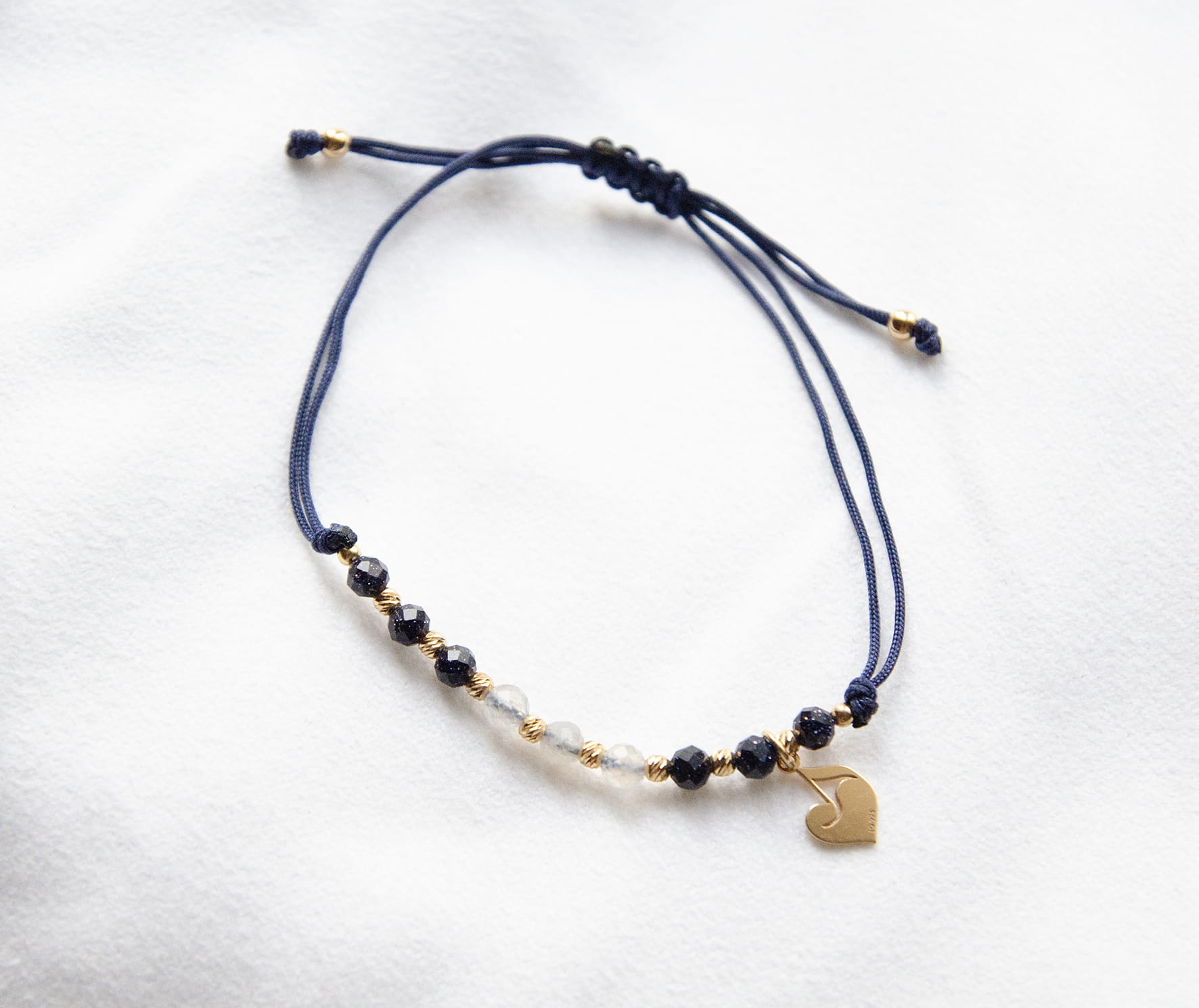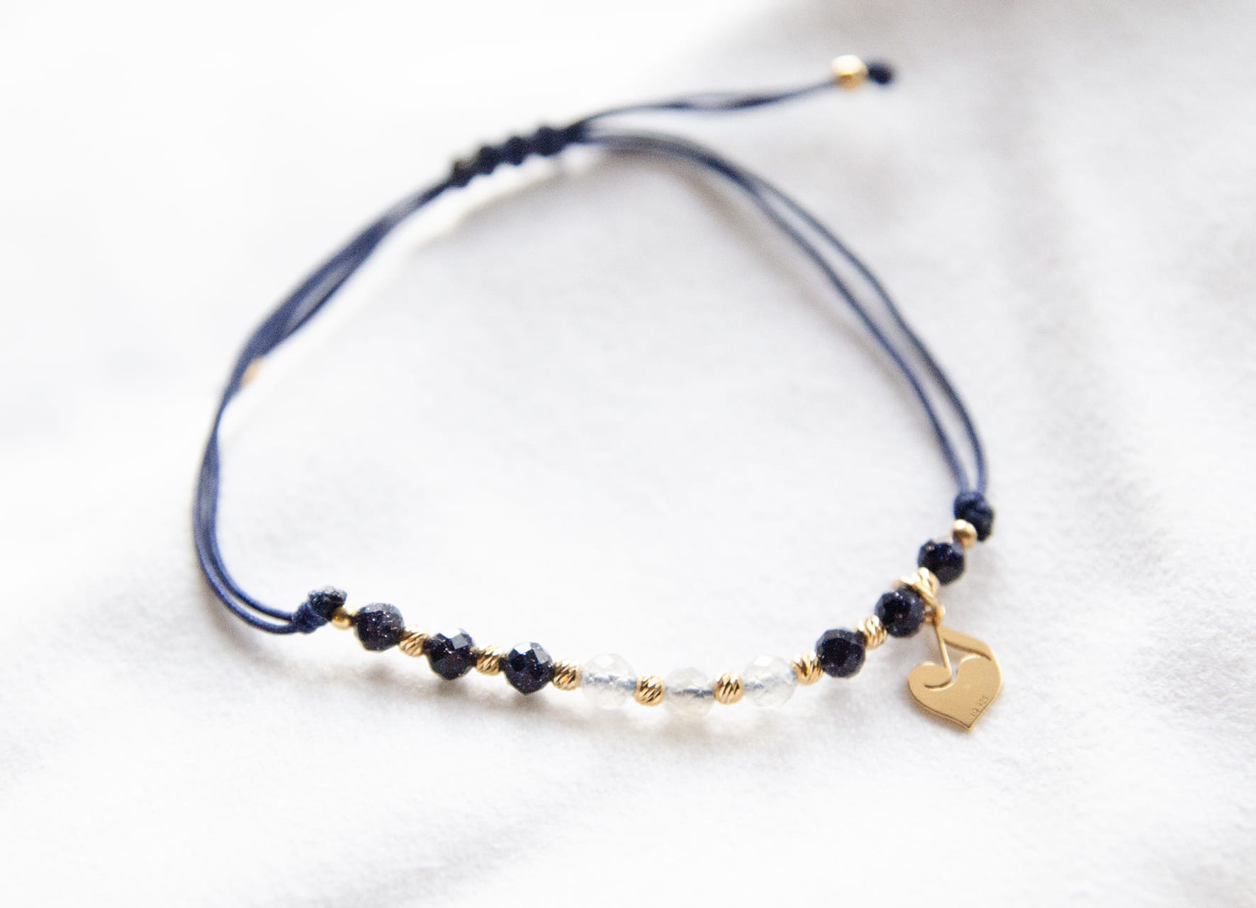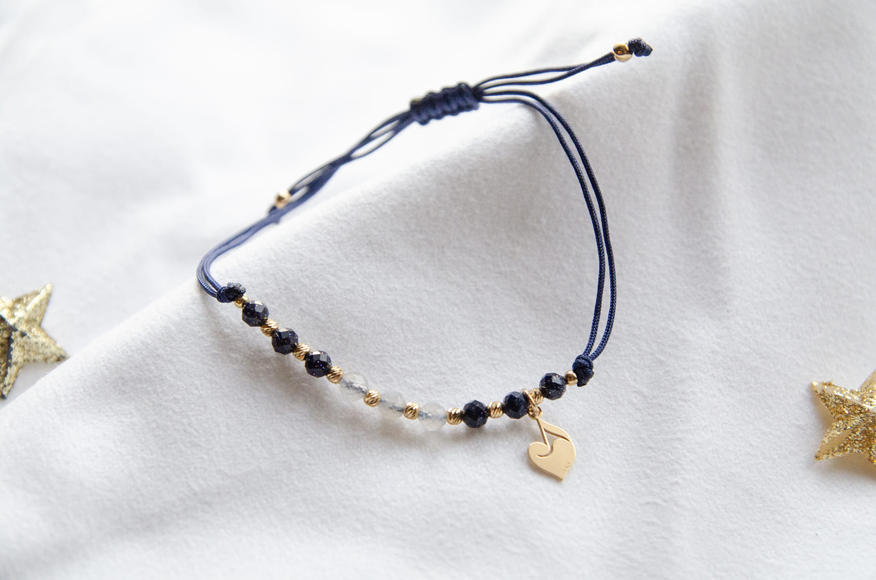 Bransoletka muzyczna „Nutka z sercem” – ciemnogranatowa bransoletka z Nocą Kairu i Labradorytem
