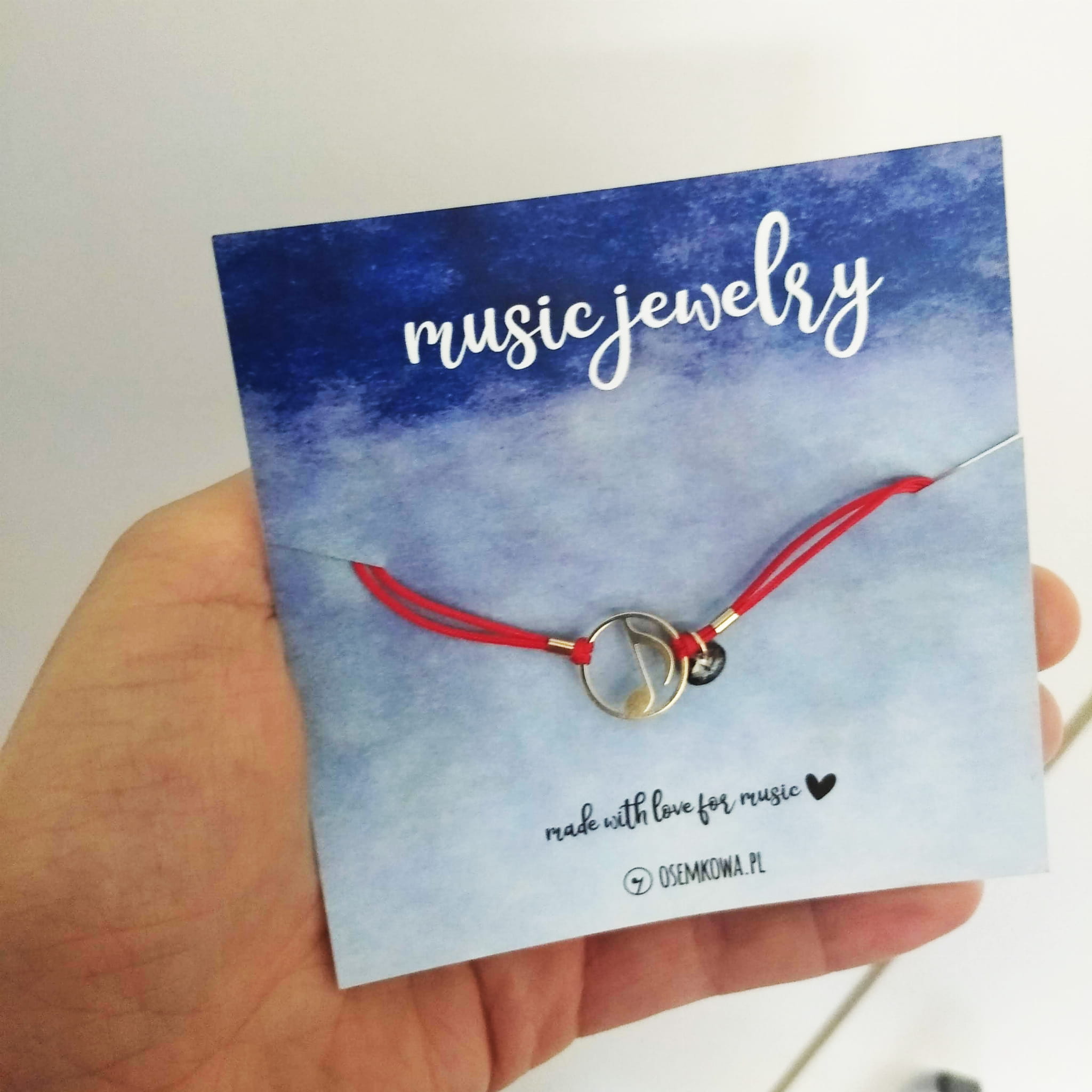 Bransoletka muzyczna - Ósemka na czerwonym sznureczku