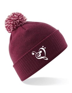 Dzianinowa czapka w burgundowym kolorze z haftowanymi nutami.