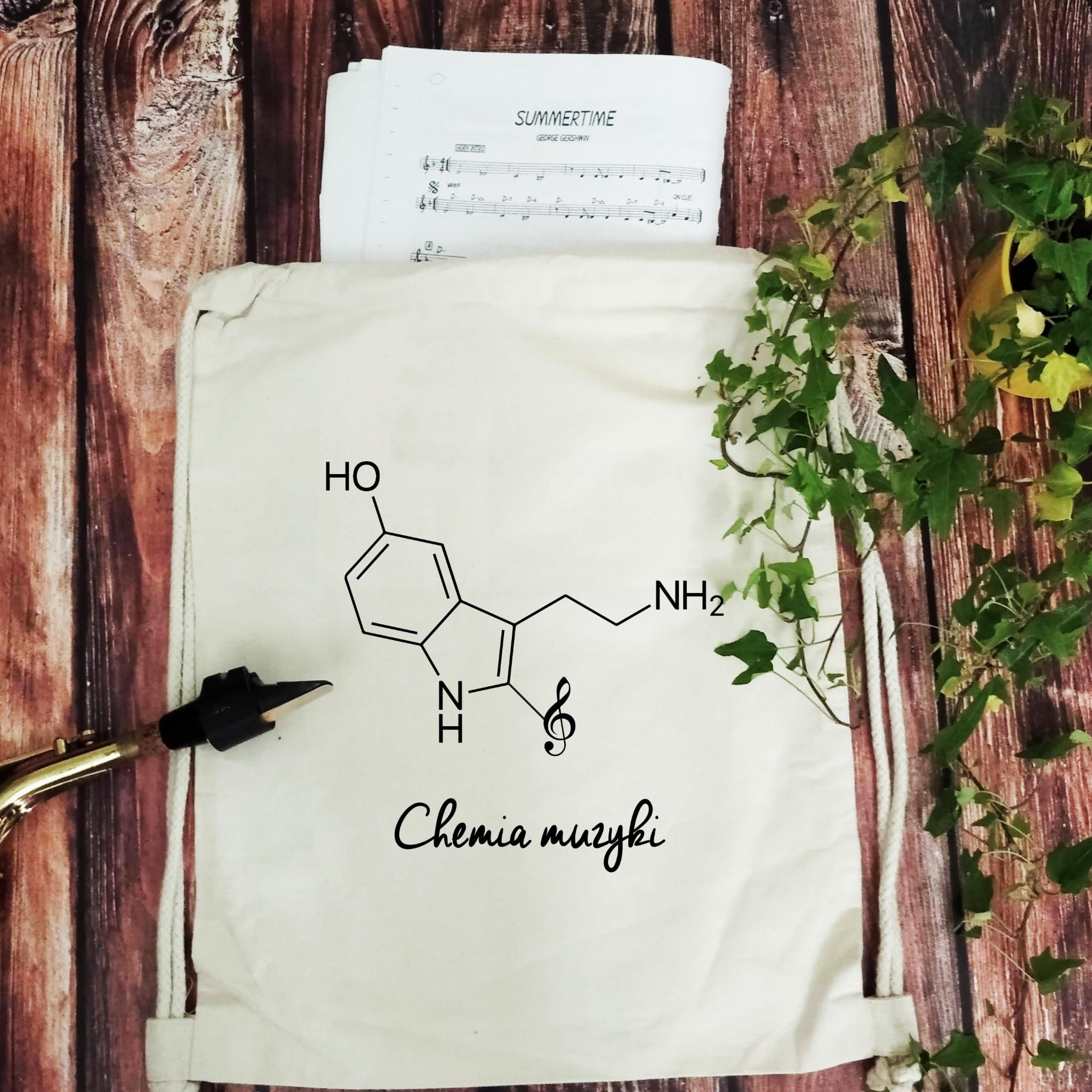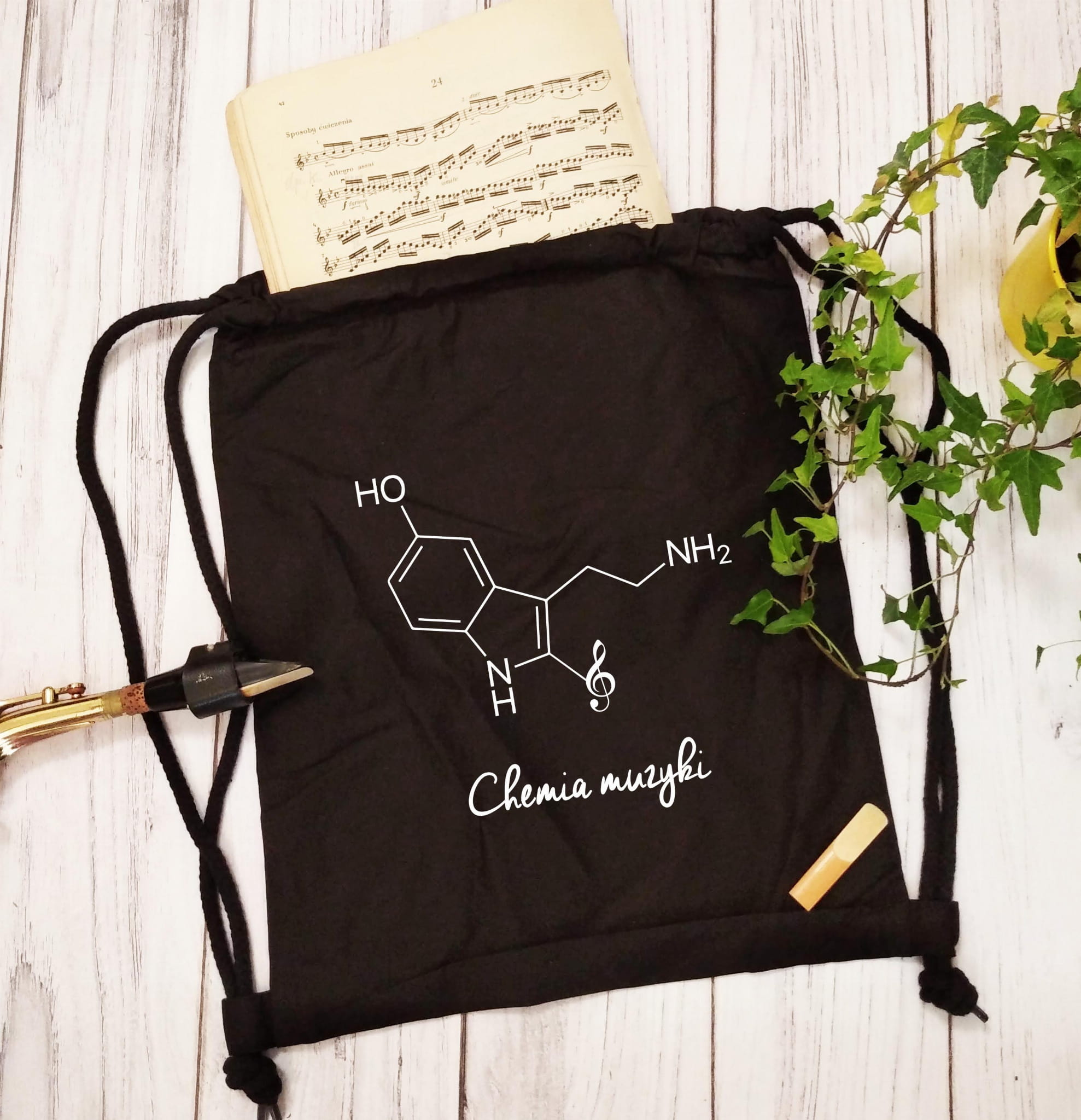 Mocny i solidny worek plecak z wzorem - Chemia muzyki - serotonina.