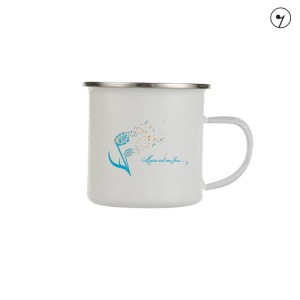 Kubek metalowy, emaliowany z uszkiem, Dmuchawiec, nutawiec, projekt 2.