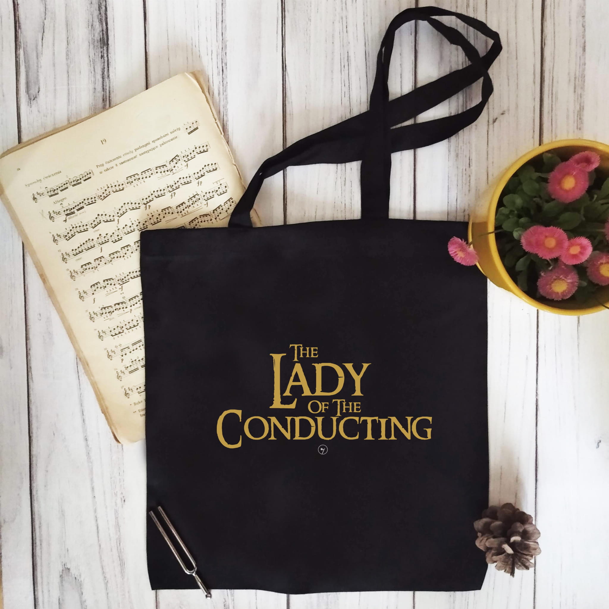 Torba na nuty i inne muzyczne szpargały. Może się przydać również na zakupy czy też ciężką teczkę z racji na mocny materiał (to znacznie mocniejsza torba, niż zwykle są sprzedawane). The lord of the conducting - The lady of the conducting