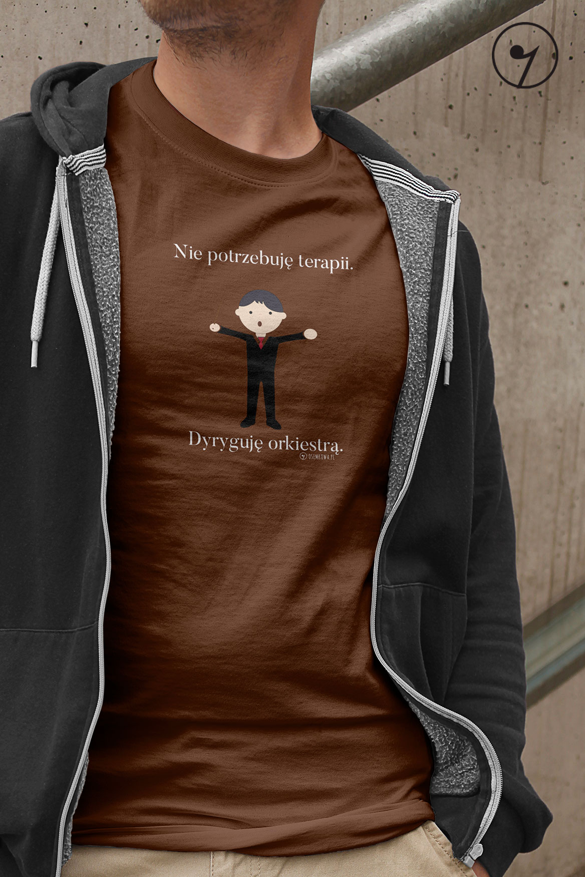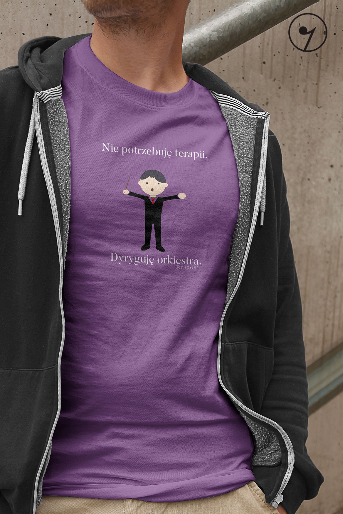 Koszulka damska lub męska dla dyrygenta orkiestry. Wzór z cyklu "Nie potrzebuję terapii".