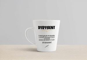 Kubek ze wzorem 'Dyrygent - rozwiązuje problemy, o których nie masz pojęcia'