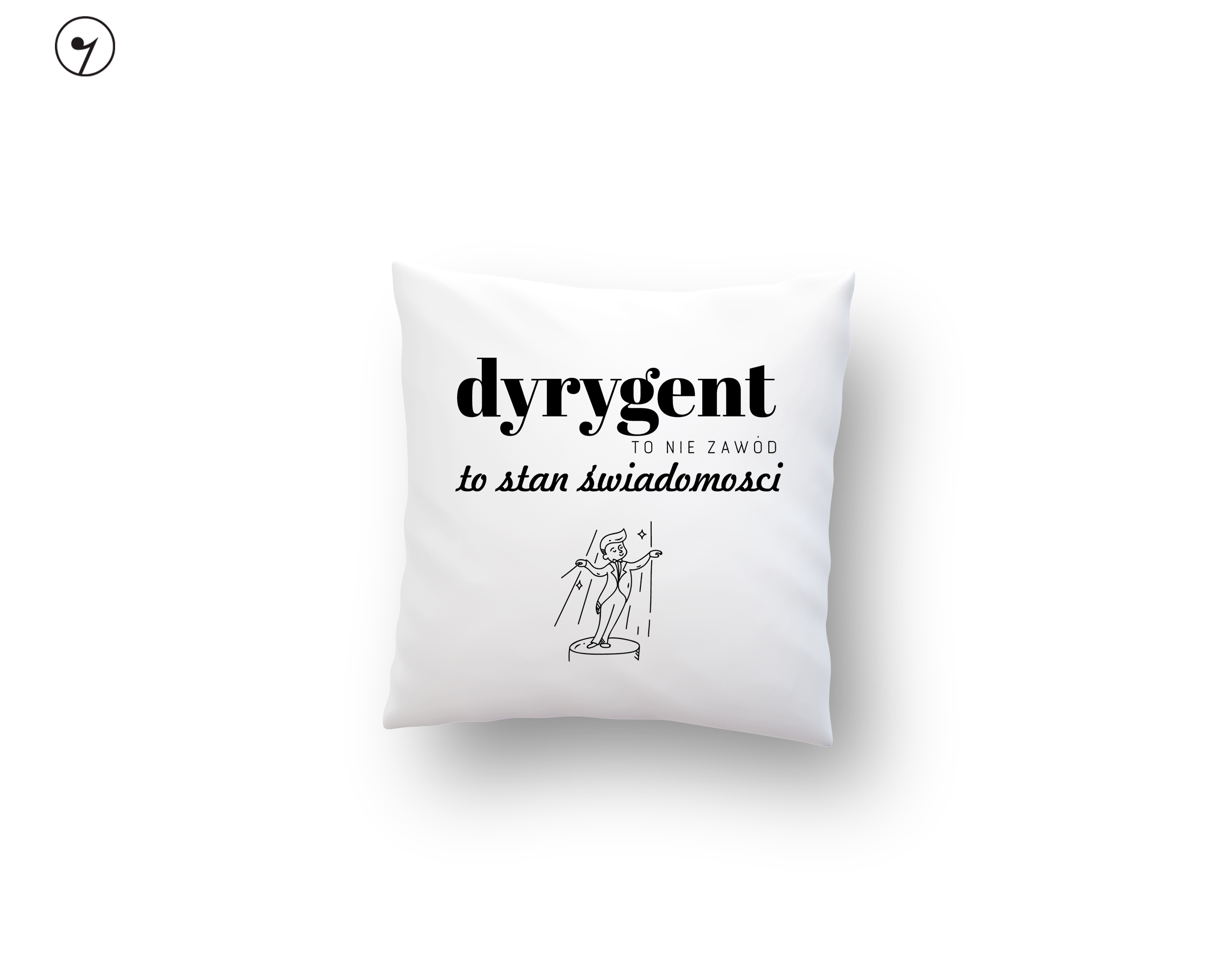Biała, poliestrowa poduszka. Dyrygent to nie zawód to stan świadomości.