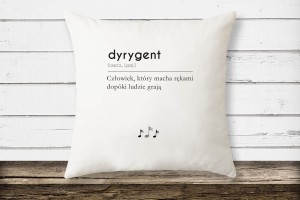 Biała, poduszka wzorem - Dyrygent - człowiek, który macha rękami dopóki ludzie grają.