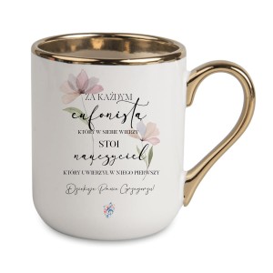 - Trwałość i jakość – kubek lubi mycie ręczne. Dla zachowania blasku nadruku i złotych elementów nie zalecamy mycia w zmywarce.