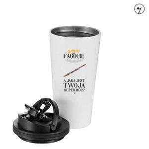 Kubek dla flecistów którzy wolą mieć swoją kawę lub herbatę ciepłą przez dłuższy czas. Kubek termiczny ze wzorem fagot supermoc.