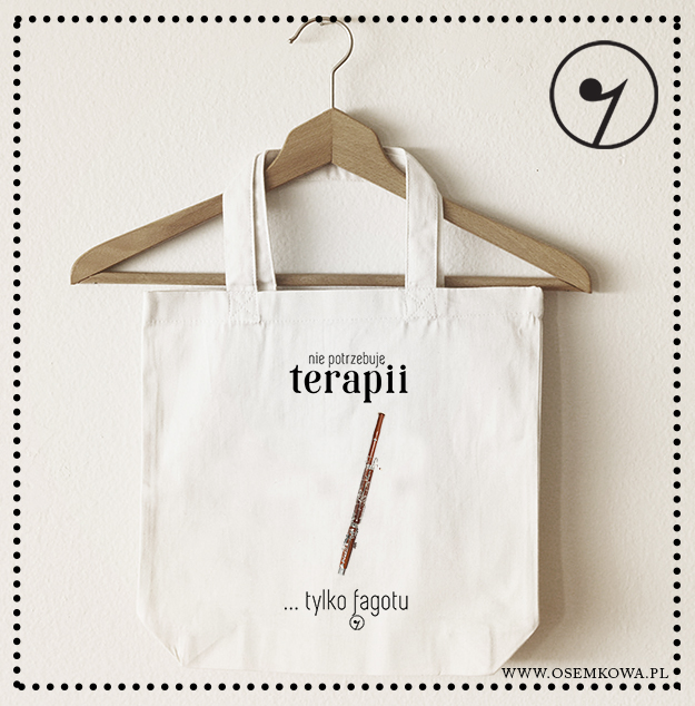 Torba na nuty i inne muzyczne szpargały. Może się przydać również na zakupy czy też ciężką teczkę z racji na mocny materiał (to znacznie mocniejsza torba, niż zwykle są sprzedawane). Torba z fagotem.