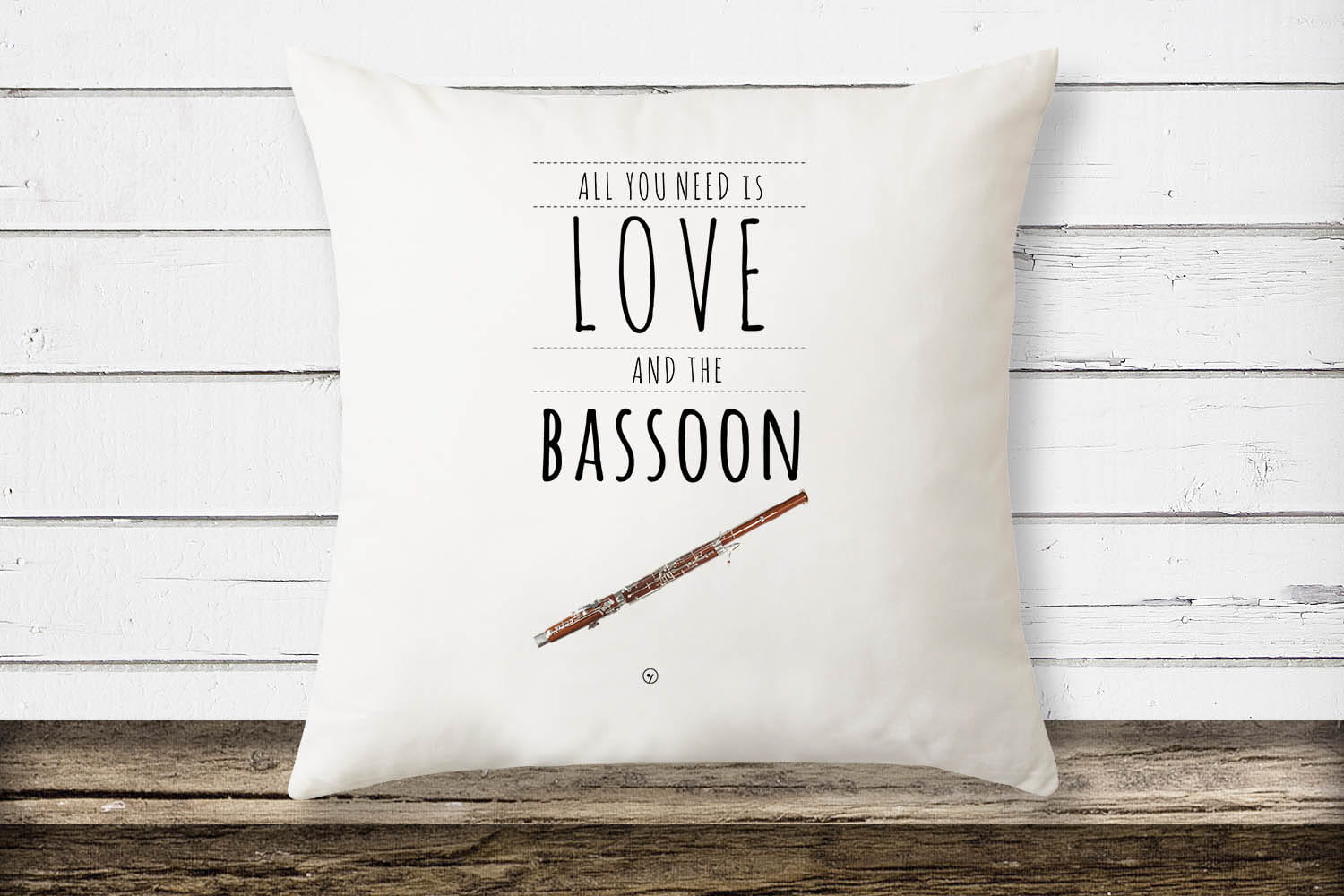 Biała poduszka z wzorem - Fagot - all you need is love and the bassoon .