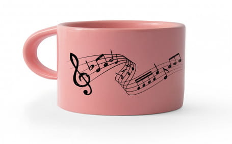 Piękna muzyczna filiżanka: różowa i kawowa. Powierzchnia filiżanki jest błyszcząca, zaś wnętrze posiada matowe wykończenie a szersze uszko jest bardzo wygodne do trzymania.