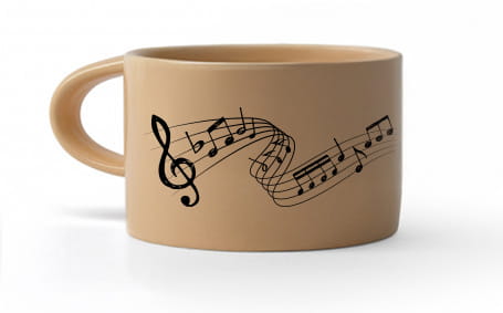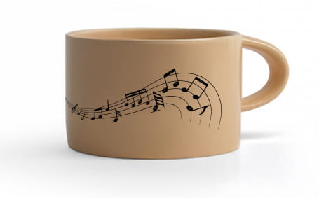 Piękna muzyczna filiżanka. Powierzchnia filiżanki jest błyszcząca, zaś wnętrze posiada matowe wykończenie a szersze uszko jest bardzo wygodne do trzymania.
