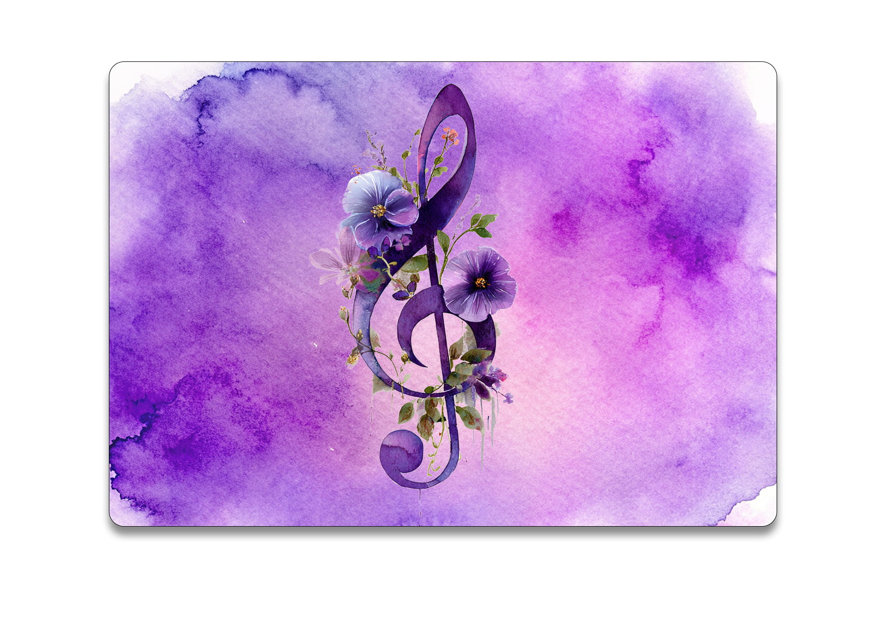 Praktyczna podkładka pod myszkę z fioletowym kluczem wiolinowym.