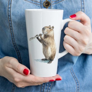 Kubek ceramiczny latte 300ml i 450 ml, kapibara gra na flecie.
