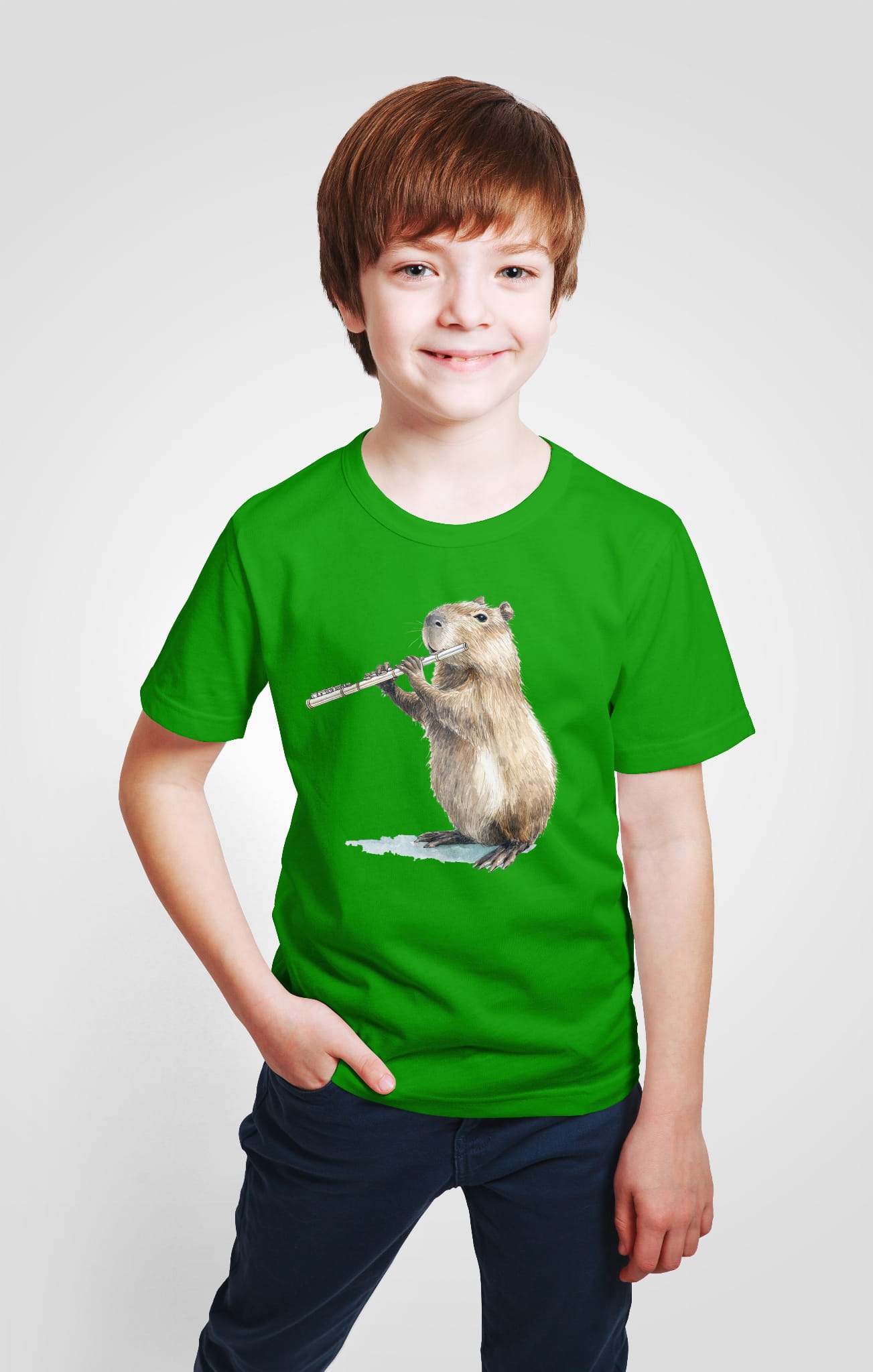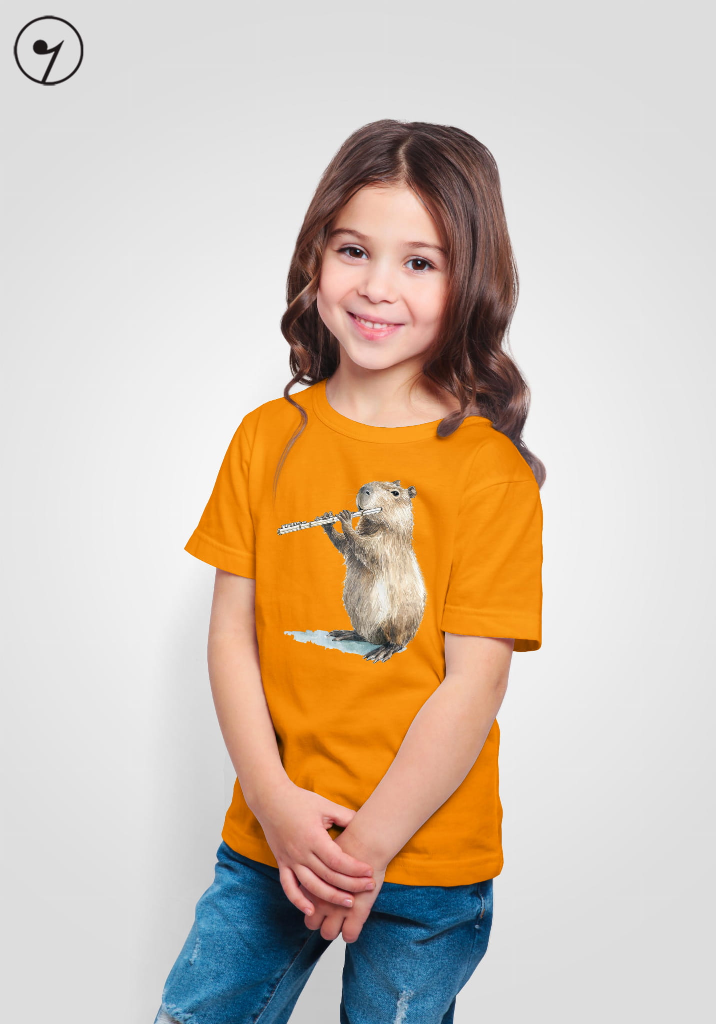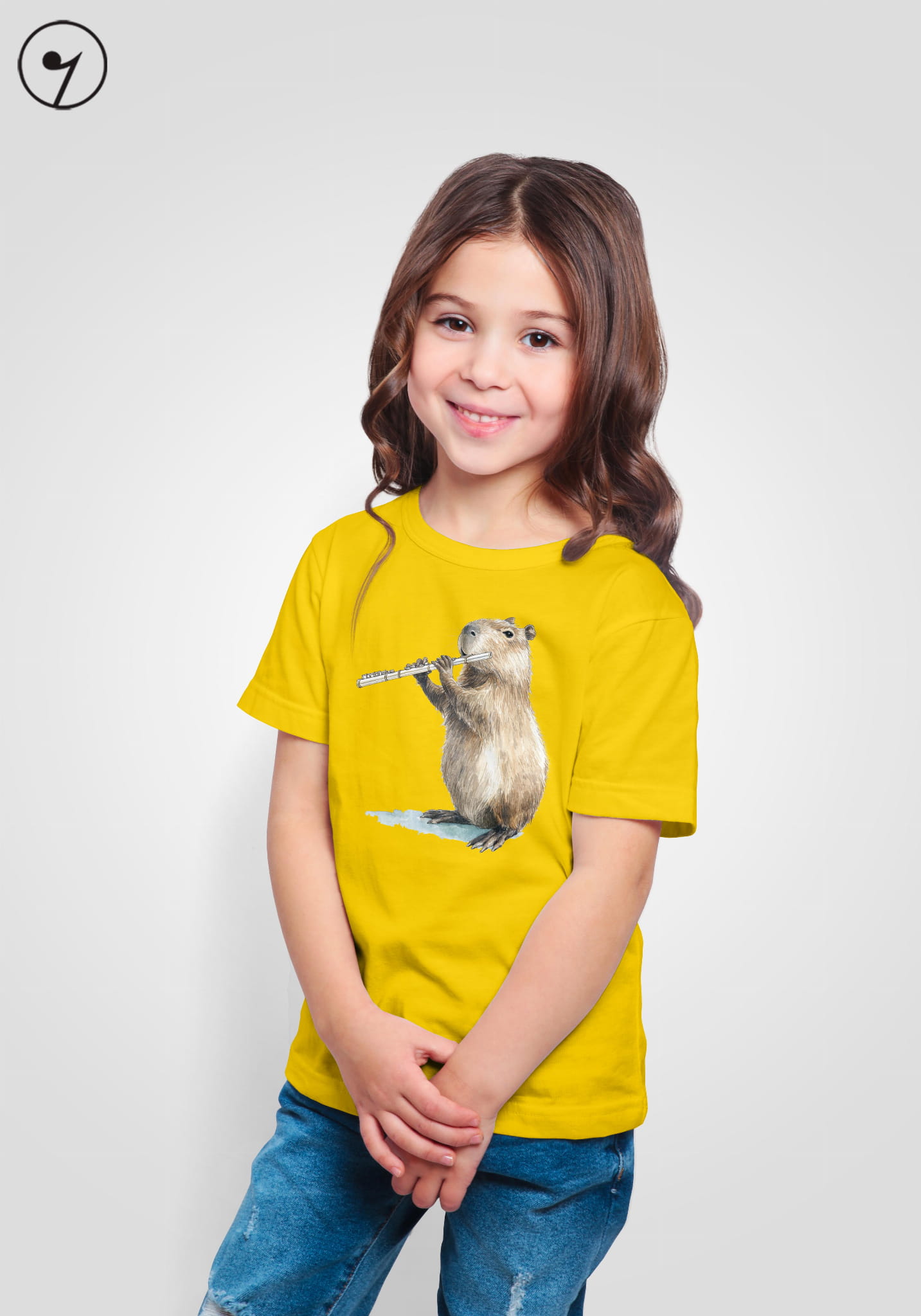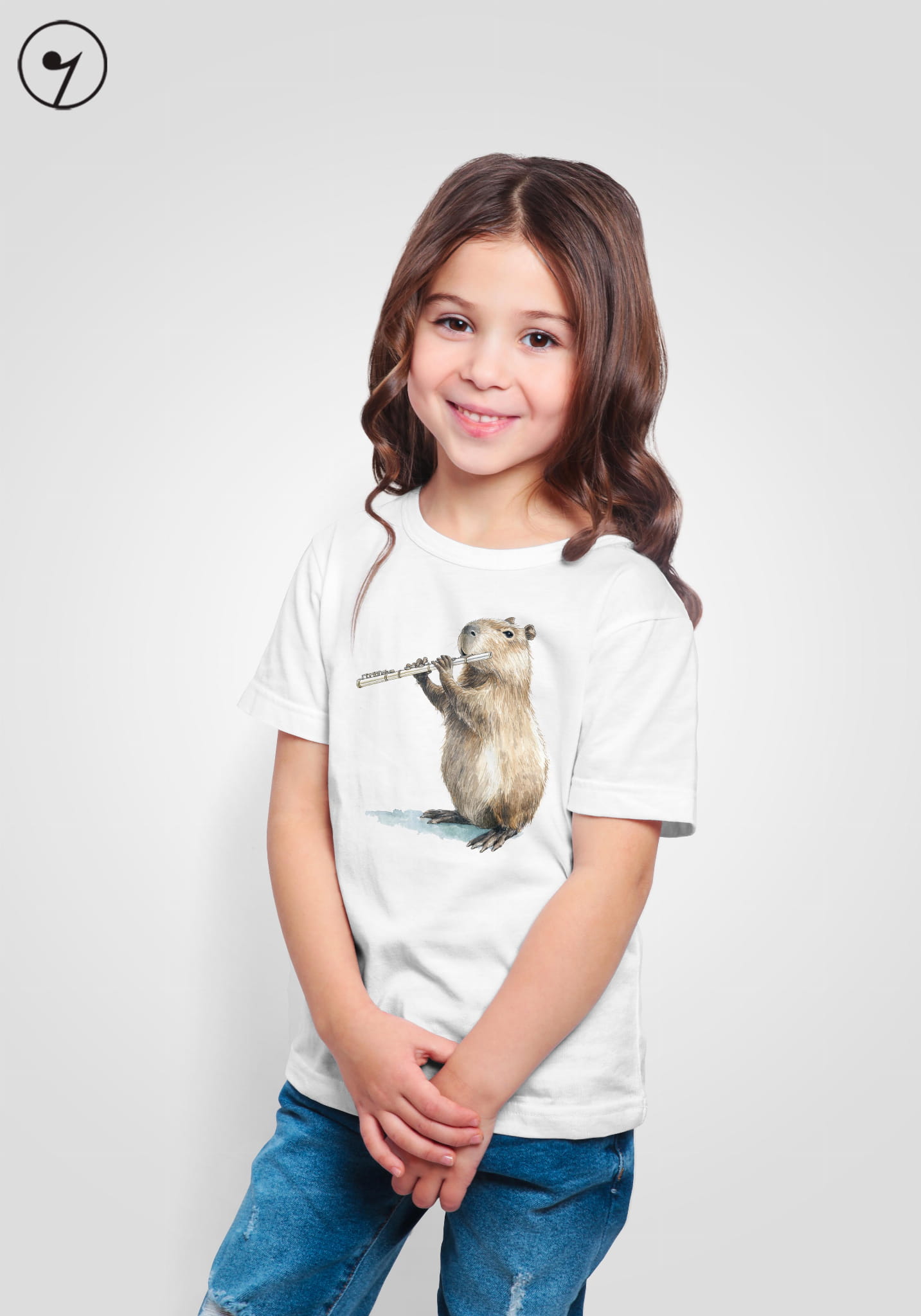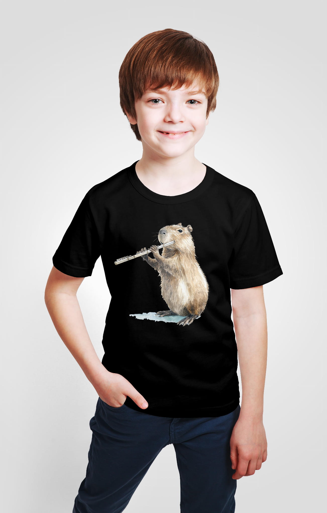 Koszulka dla młodych flecistów i flecistek. Kapibara gra na flecie.