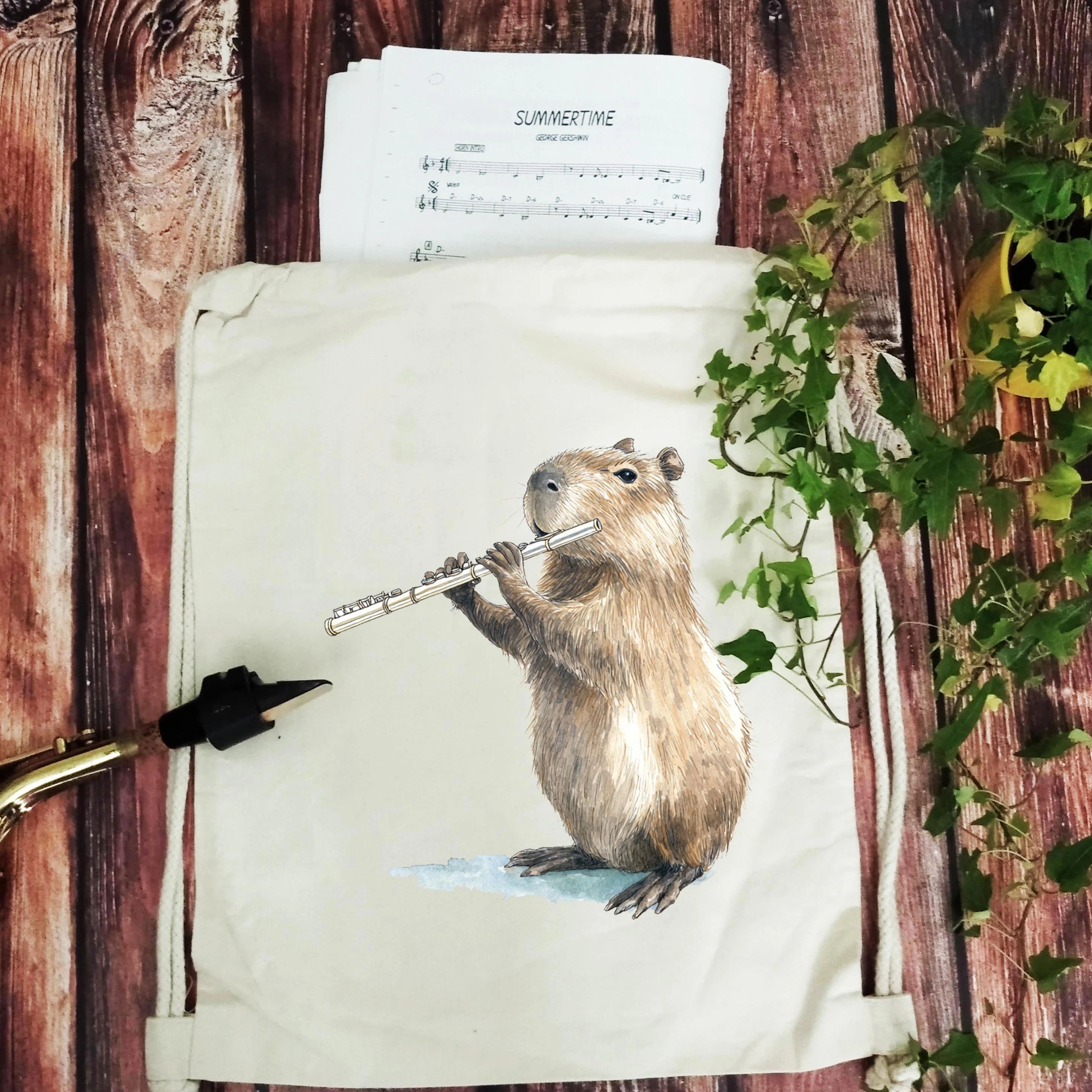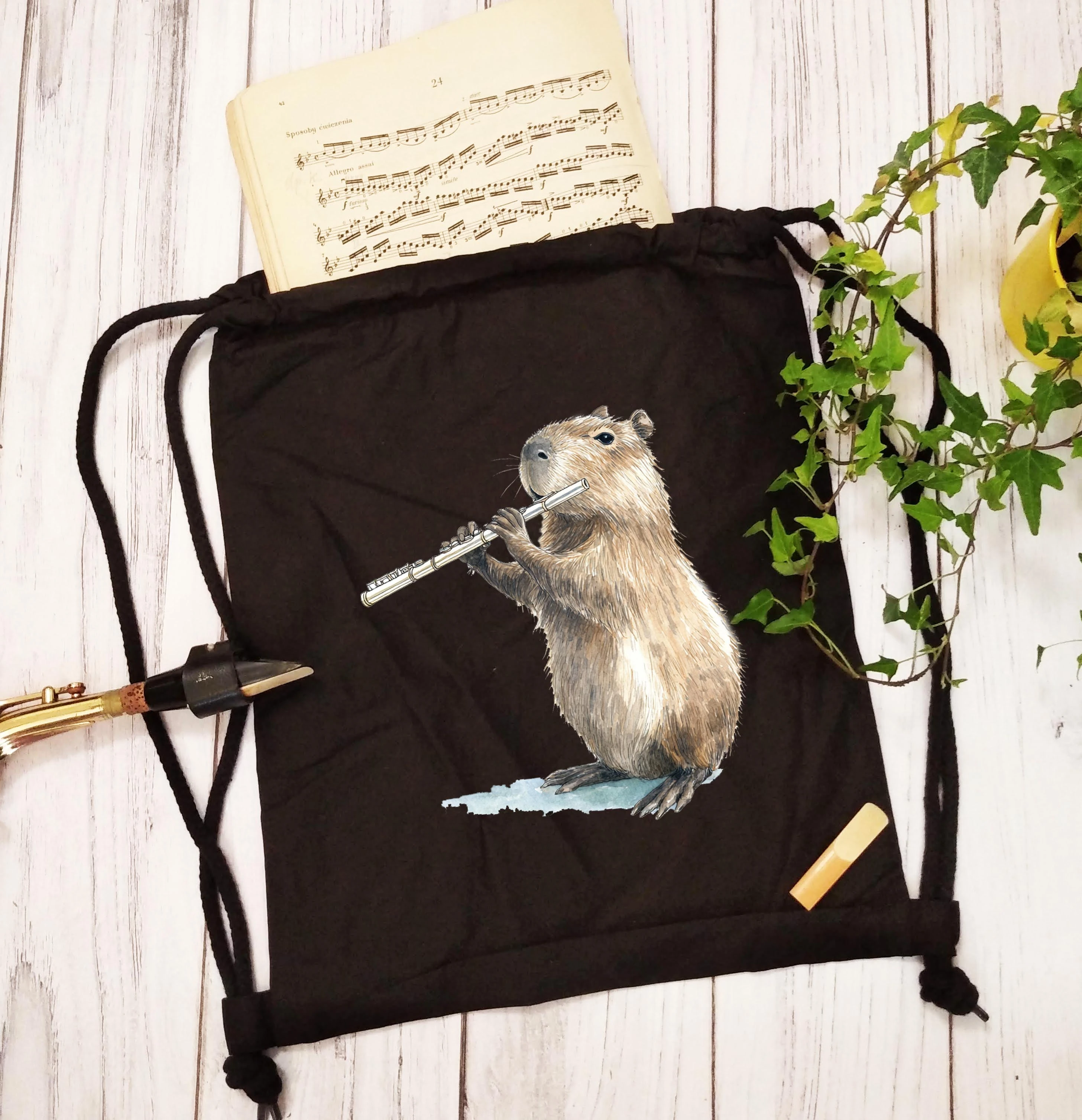 Flet - Prezent dla flecisty - Prezent dla flecistki - Kapibara gra na flecie - Worek plecak