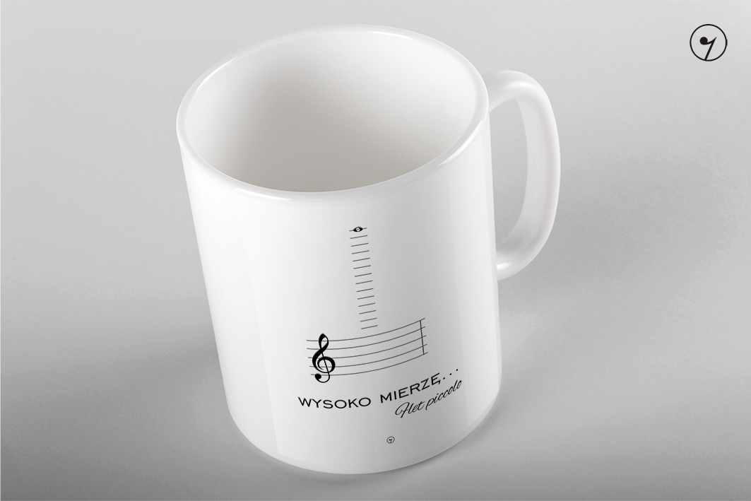 Kubek ceramiczny z fletem piccolo.