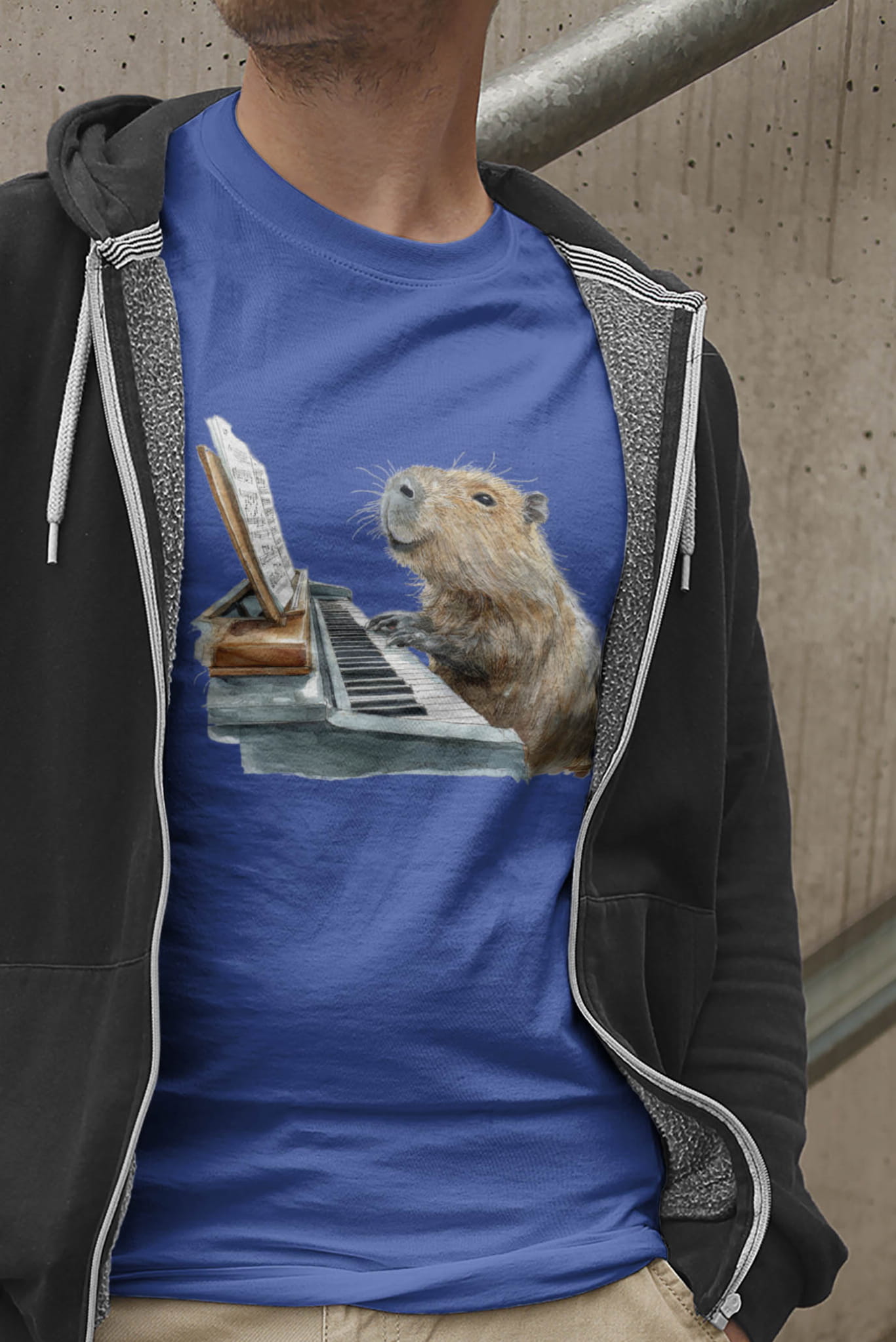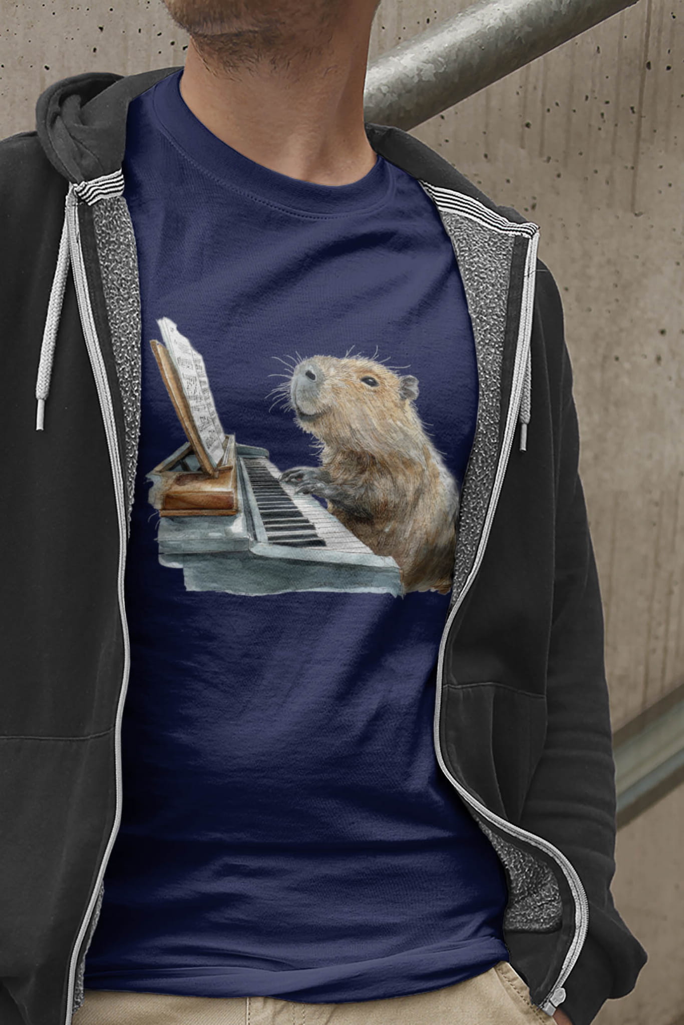 Szukasz prezentu dla pianisty, który nie jest nudny i wygląda dobrze? Ta koszulka to trafiony prezent dla muzyka i świetny wybór, jeśli celujesz w prezent dla pianisty lub upominek dla akompaniatorki. Kapibara grająca na fortepianie to czytelny motyw, dlatego to świetny prezent dla pianisty.