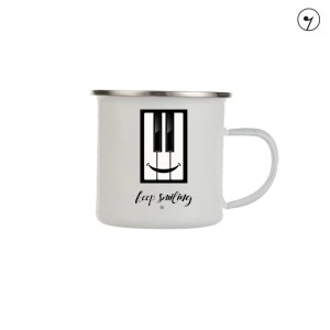 Kubek metalowy, emaliowany z uszkiem, Fortepian - Piano - Keep smiling - Kubek emaliowany
