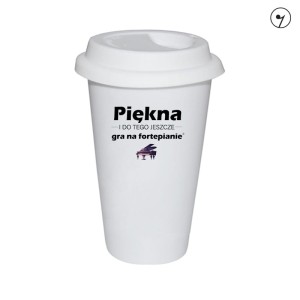 Kubki typu tumbler posiadają podwójną ściankę zapewniającą doskonałą izolację termiczną napojów, zarówno gorących jak i zimnych. Kubek wyposażony jest w wieczko zapobiegające rozlewaniu się napoju np. w samochodzie. Kubek ze wzorem: "Fortepian - Piękna i gra na fortepianie".