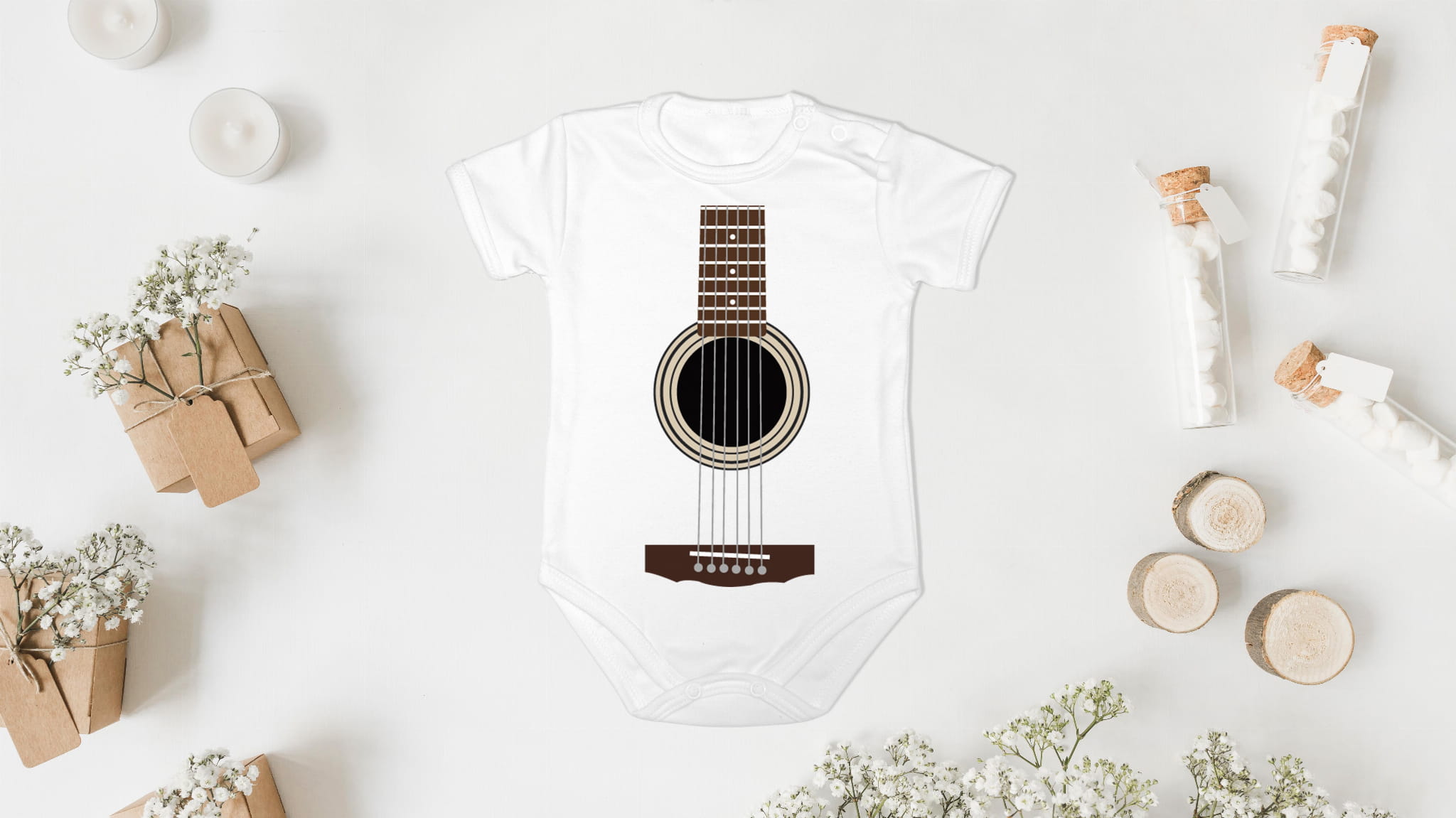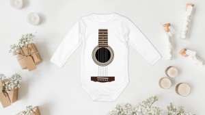 Body z krótkim rękawem, i długim rękawem. Z gitarą.