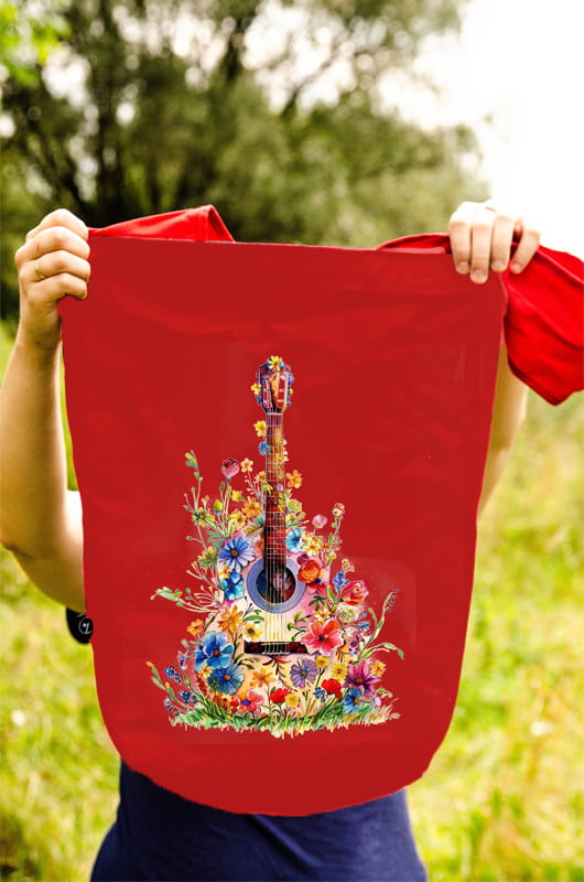 Gitara – Gitara kwiaty - Prezent dla gitarzystki - Prezent dla gitarzysty - Torba na ramię