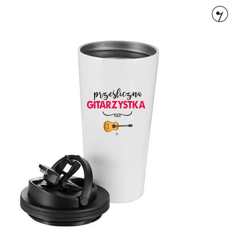 Kubek dla flecistów którzy wolą mieć swoją kawę lub herbatę ciepłą przez dłuższy czas. Prześliczna gitarzystka.