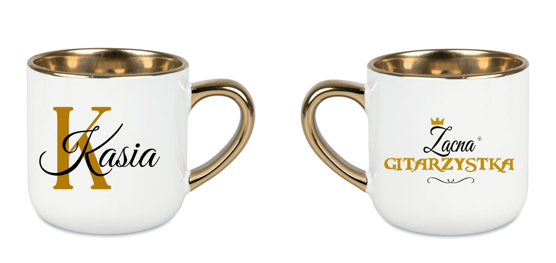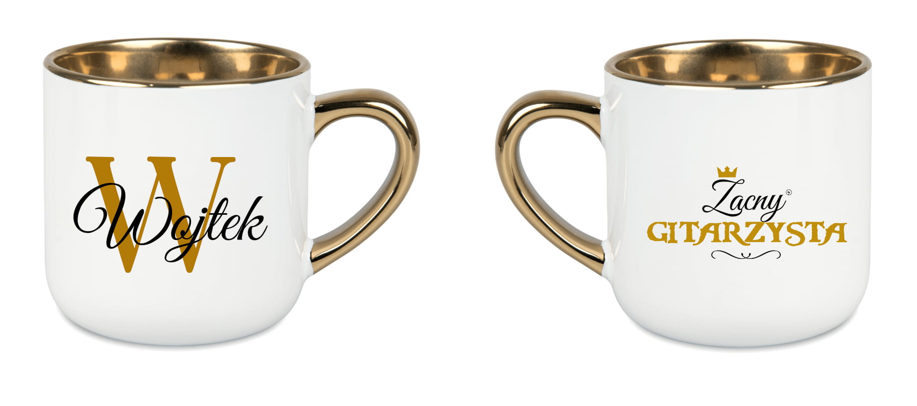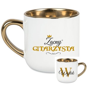 To biały, ceramiczny, elegancki kubek o pojemności 400 ml, ze złotym rantem i uchwytem, dostępny z napisem „Zacna gitarzystka” lub „Zacny gitarzysta” oraz możliwością personalizacji imieniem. Można go dodatkowo zamówić w ozdobnym opakowaniu z kokardą.