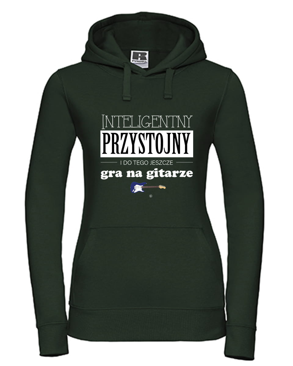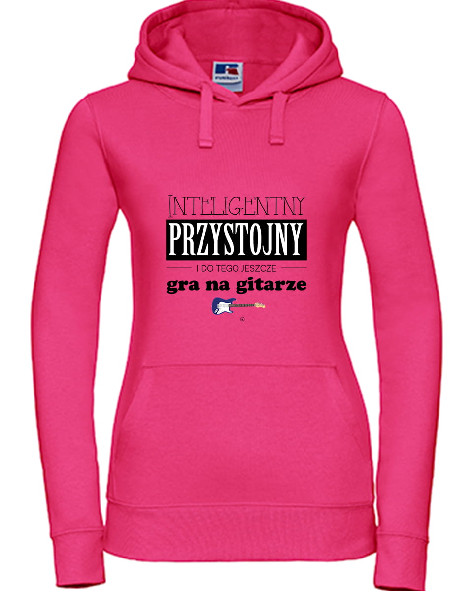 Ciepła bluza, rozmiar uniwersalny ze wzorem - Inteligentny Przystojny i do tego jeszcze gra na gitarze elektrycznej.