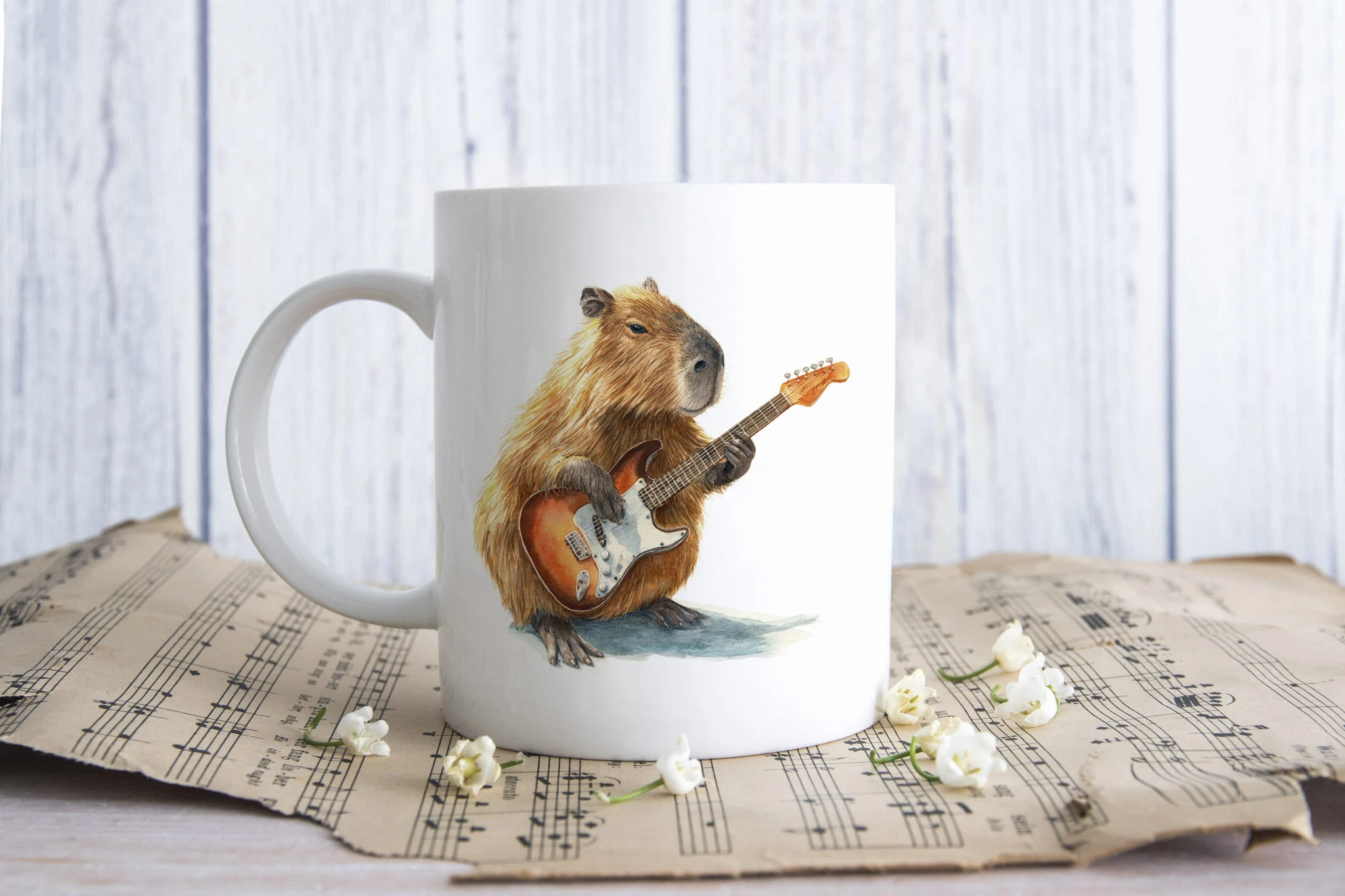 Gitara elektryczna - Kapibara - Prezent dla gitarzysty - Kubek ceramiczny