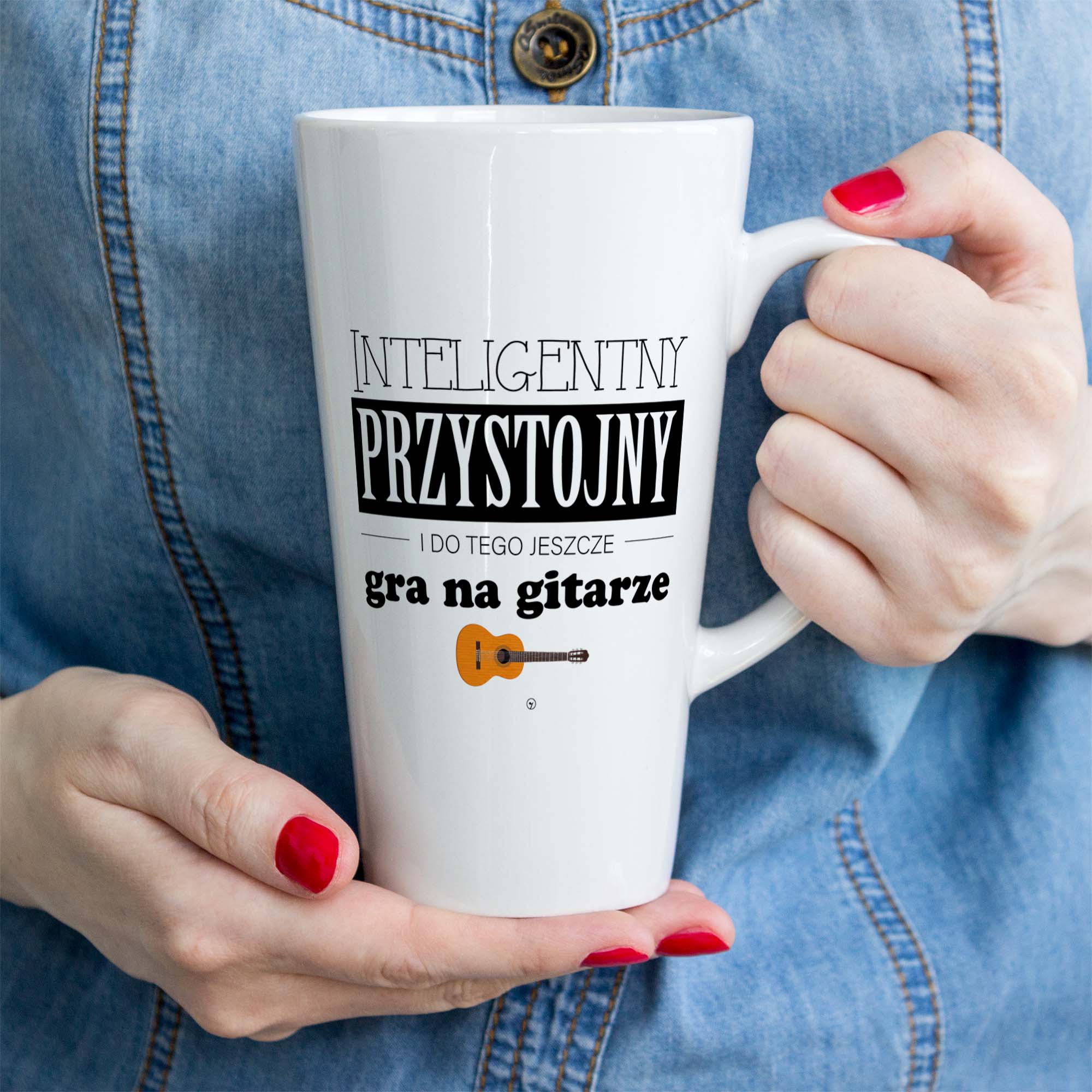 Kubek ceramiczny latte 300ml i 450ml. Inteligentny Przystojny i do tego jeszcze gra na gitarze.