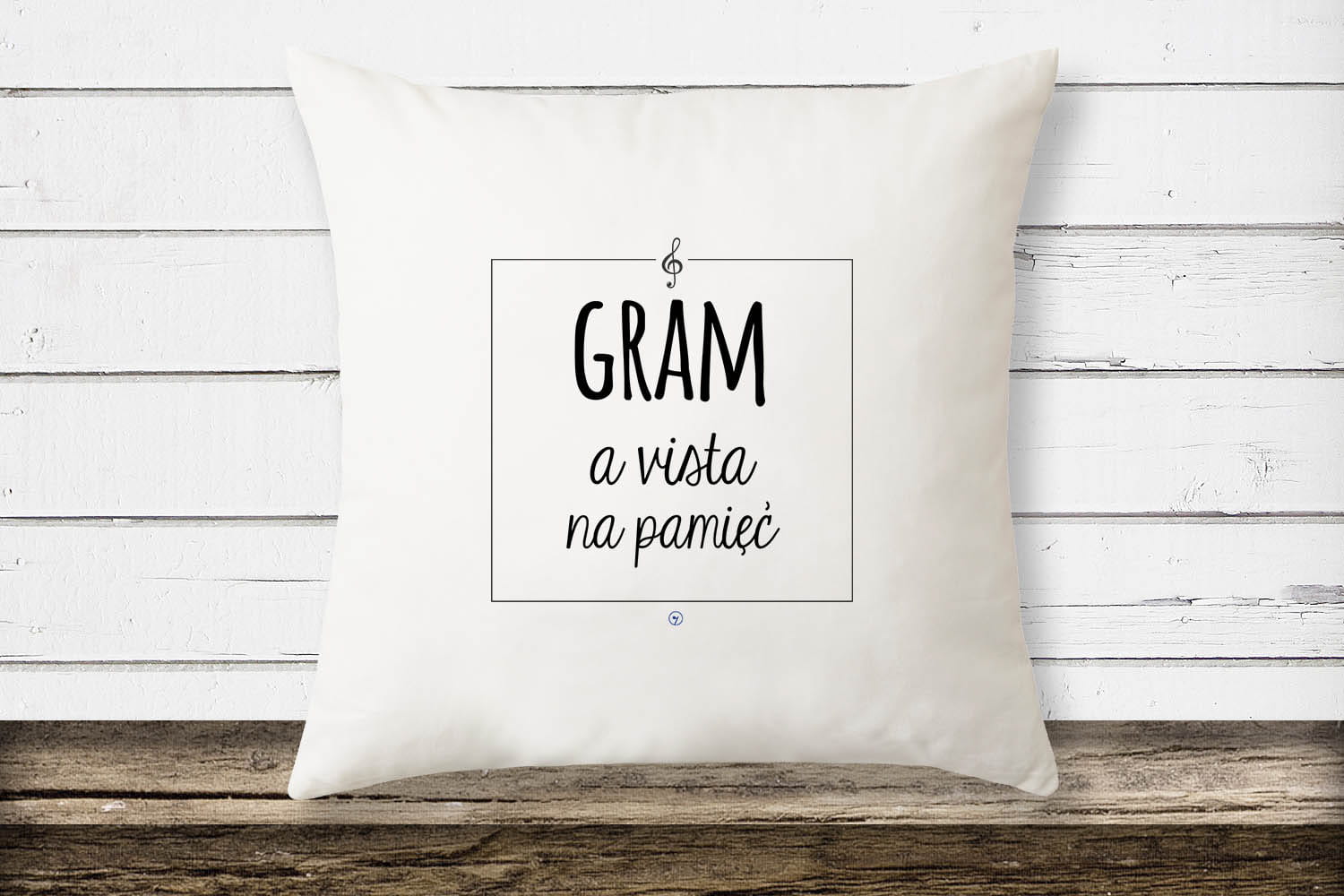 Biała, poduszka wzorem - Gram A Vista na pamięć.