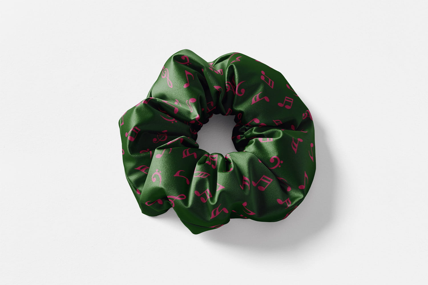 Gumka do włosów - Scrunchie - Butelkowa zieleń w wiśniowe nutki
