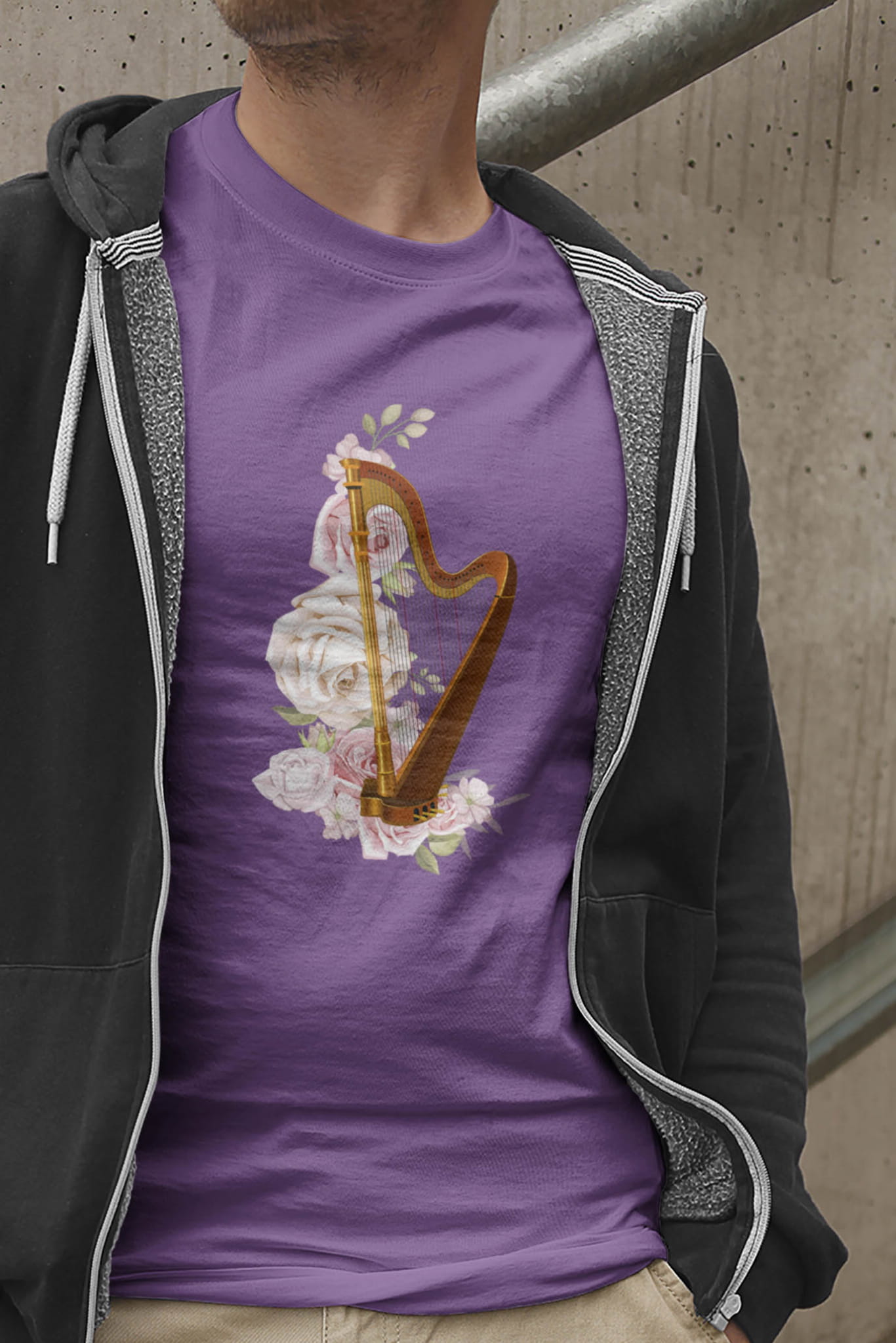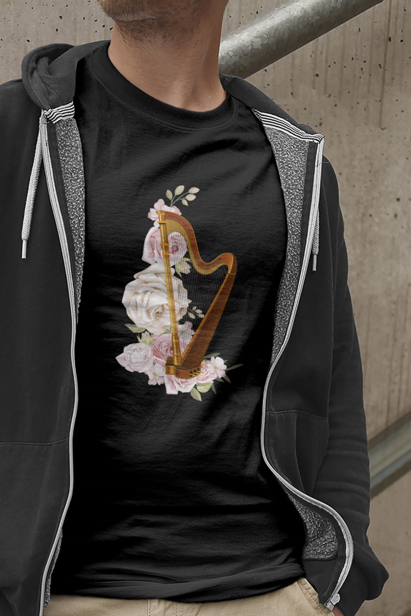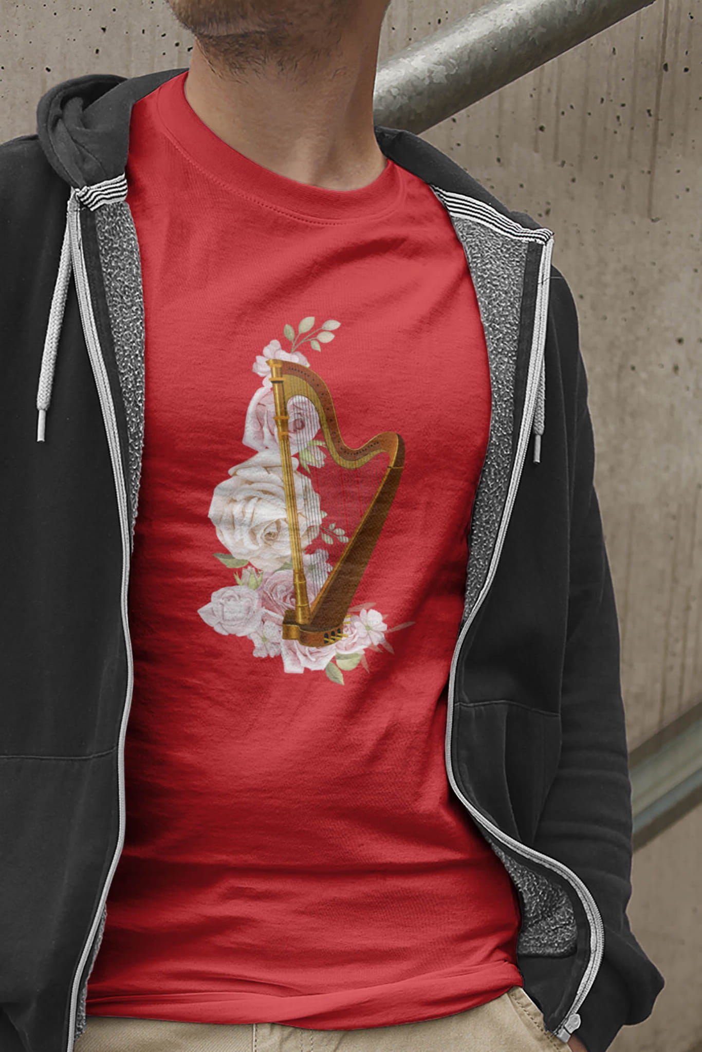 Koszulka dla muzyków. Z harfą.