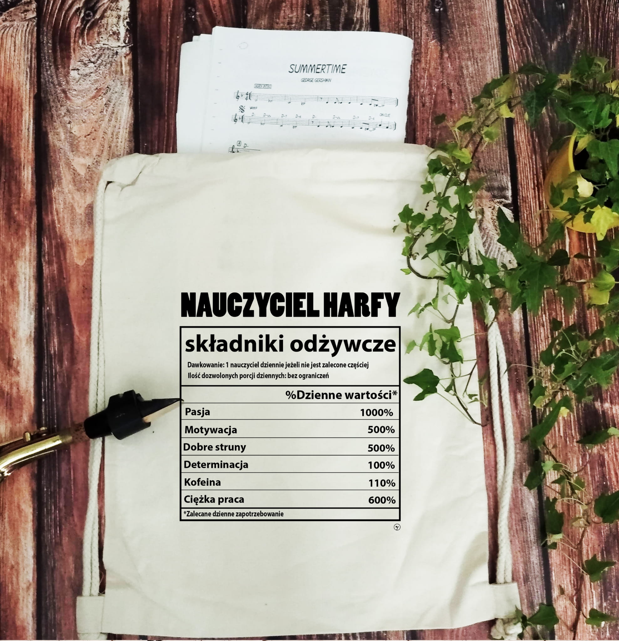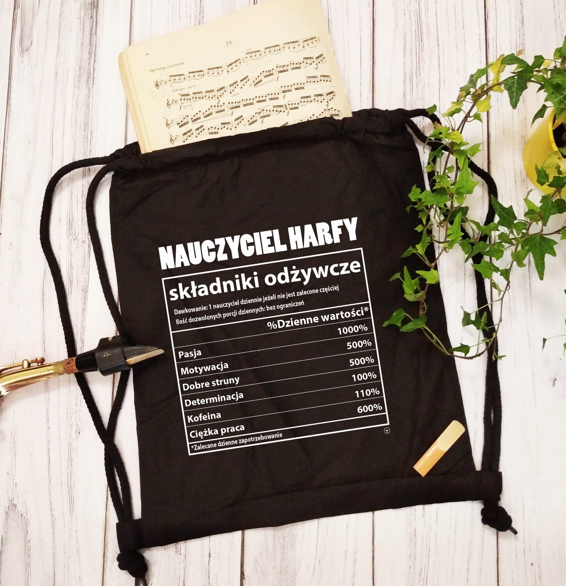 Mocny i solidny worek plecak. Nauczyciel harfy - Składniki odżywcze