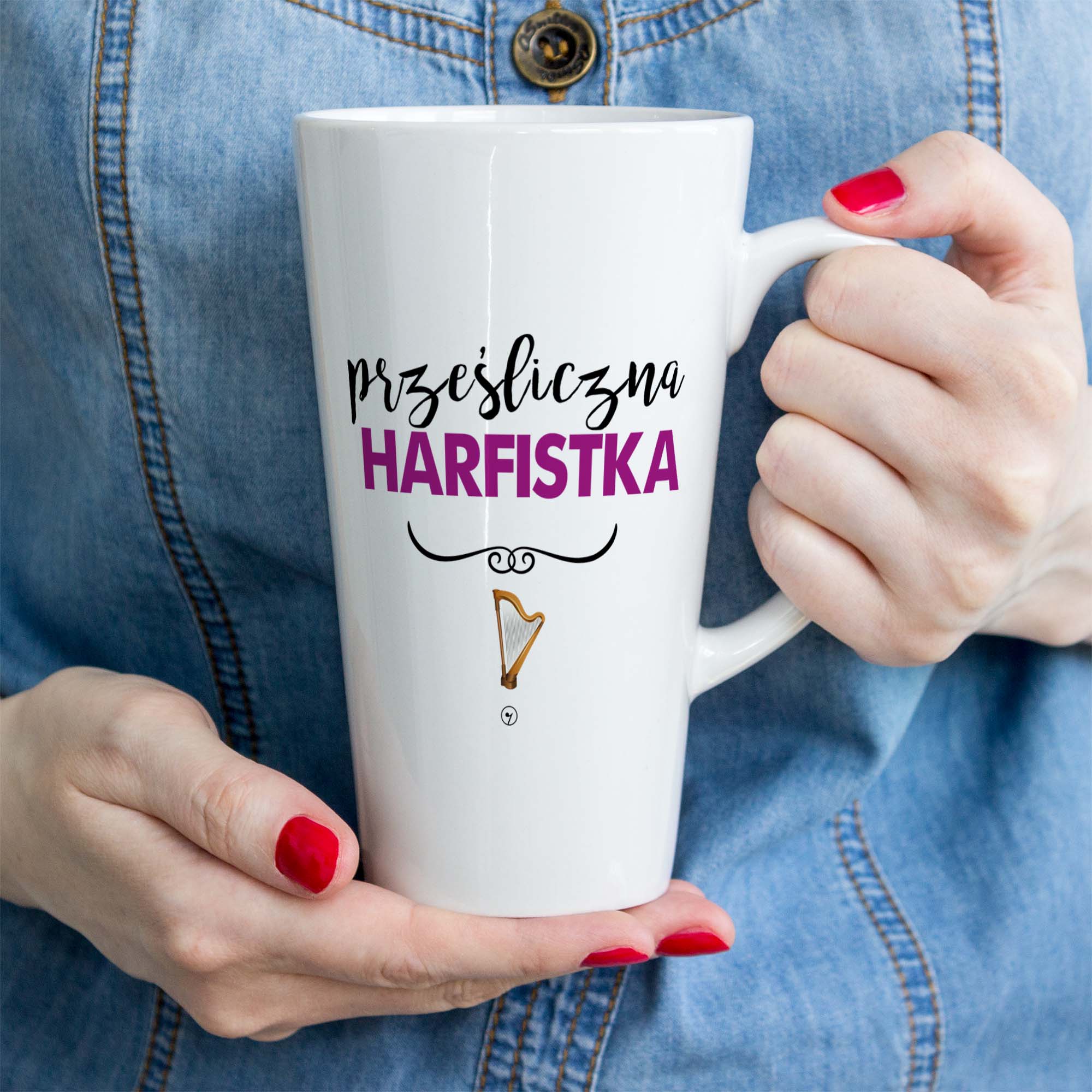Kubek ceramiczny latte o pojemności 300ml lub 450ml. Wzór na kubku - "Harfa - Prześliczna harfistka".